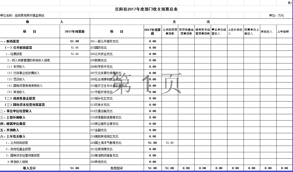 嶽陽縣2017年度部門預算公開--地環站