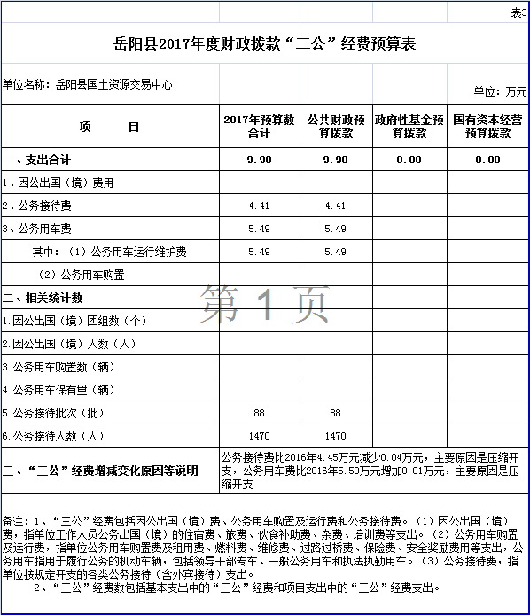 嶽陽縣2017年度部門預算公開--交易中心