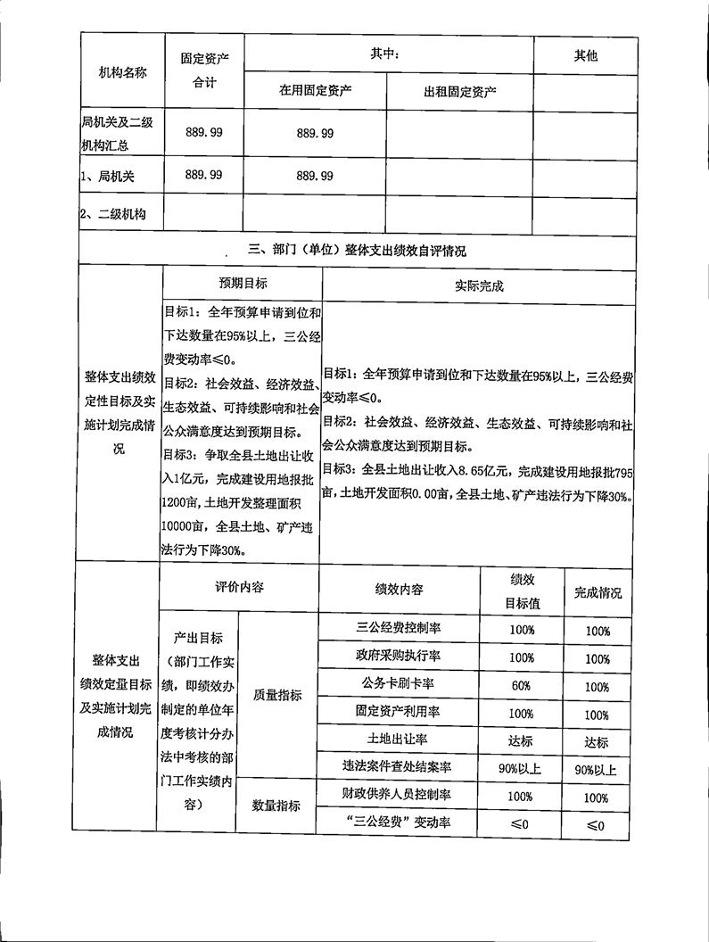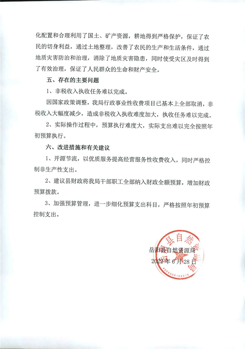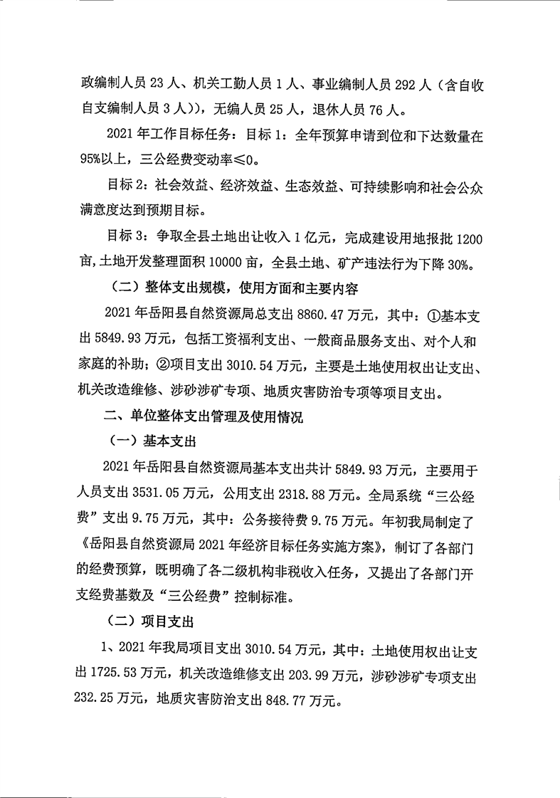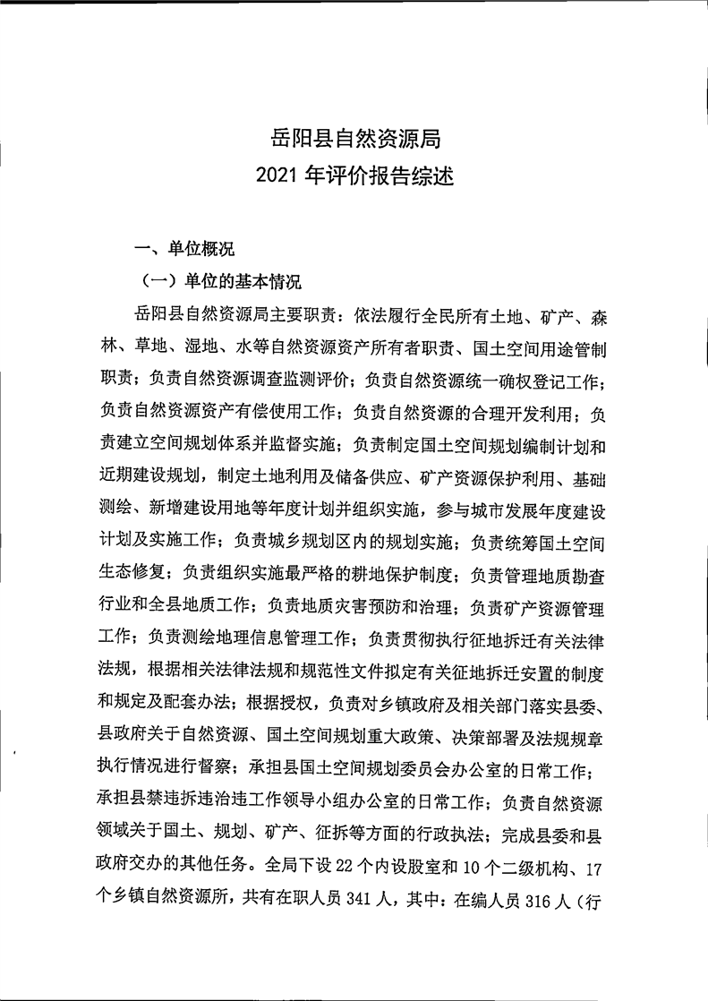 2021年度嶽陽縣自然資源局整體支出績效評價自評報告