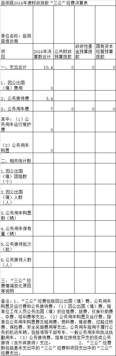 嶽陽縣信訪局2016年度財政撥款“三公”經費決算表
