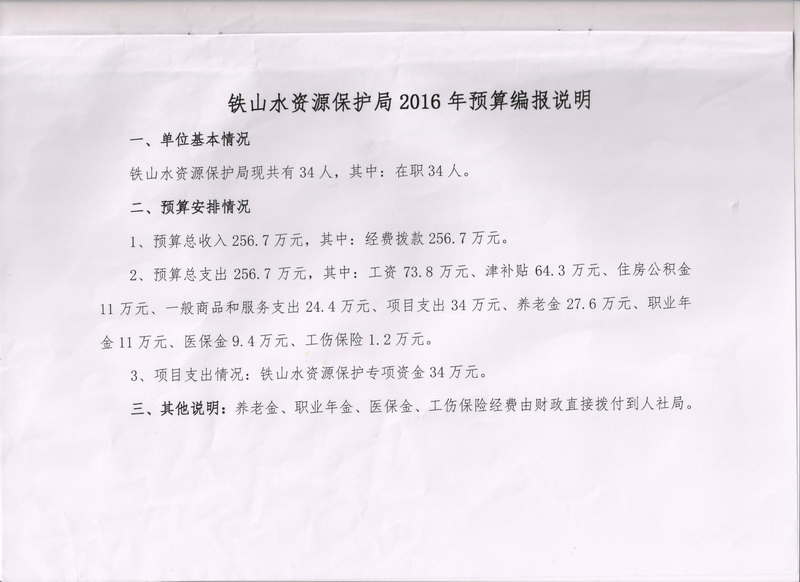 2016年預算編報說明