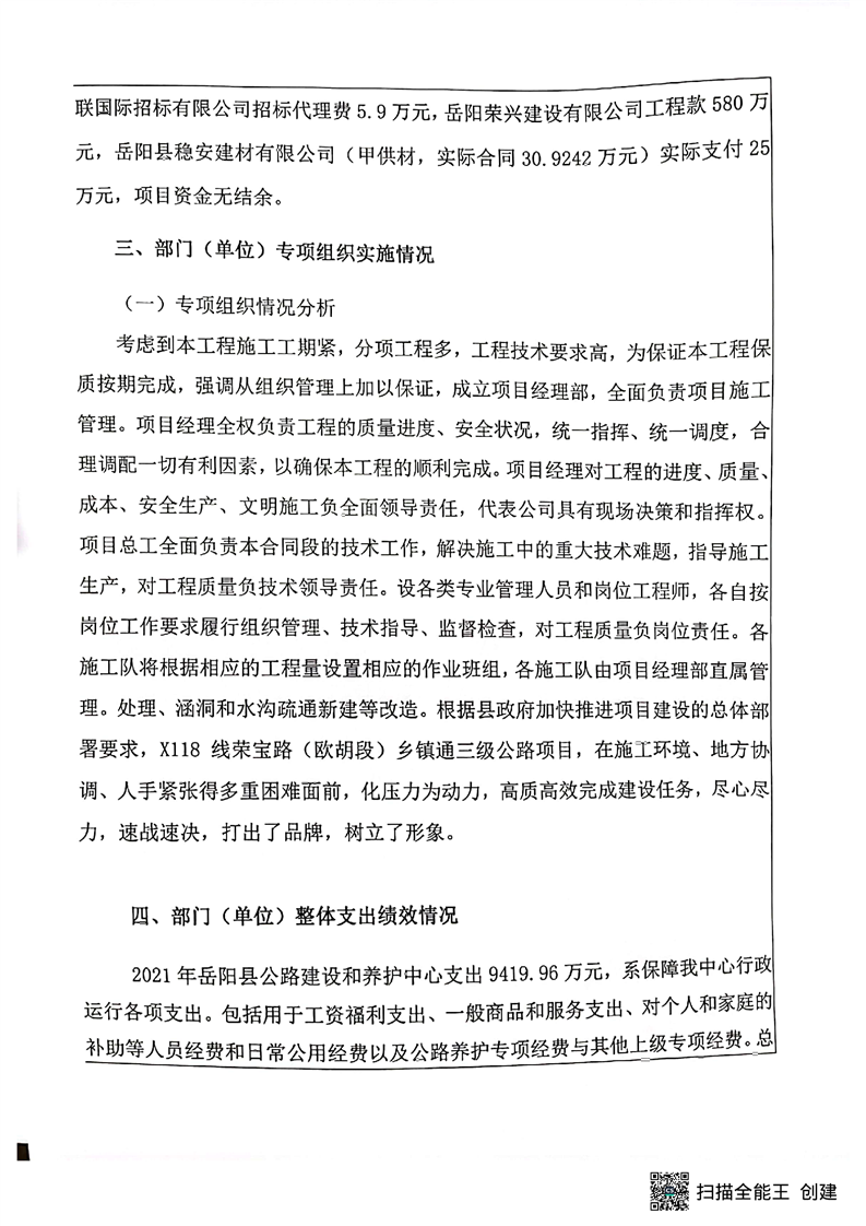 嶽陽縣2021年度部門整體支出績效評價自評報告