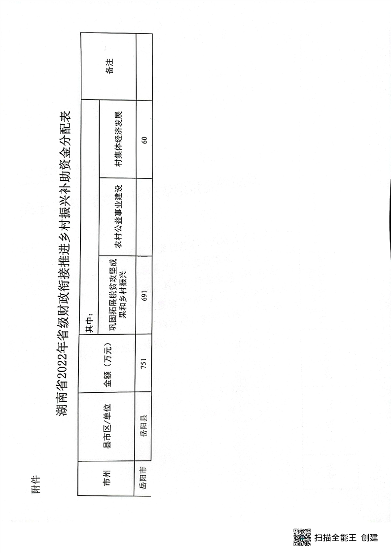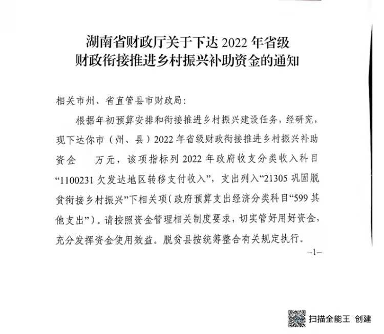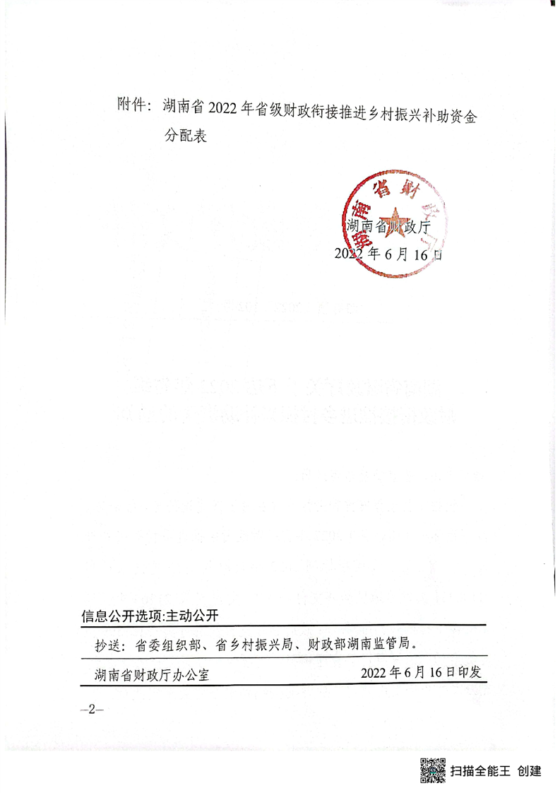 湖南省財政廳下達2022年省級財政銜接推進鄉村振興補助資金公開公示