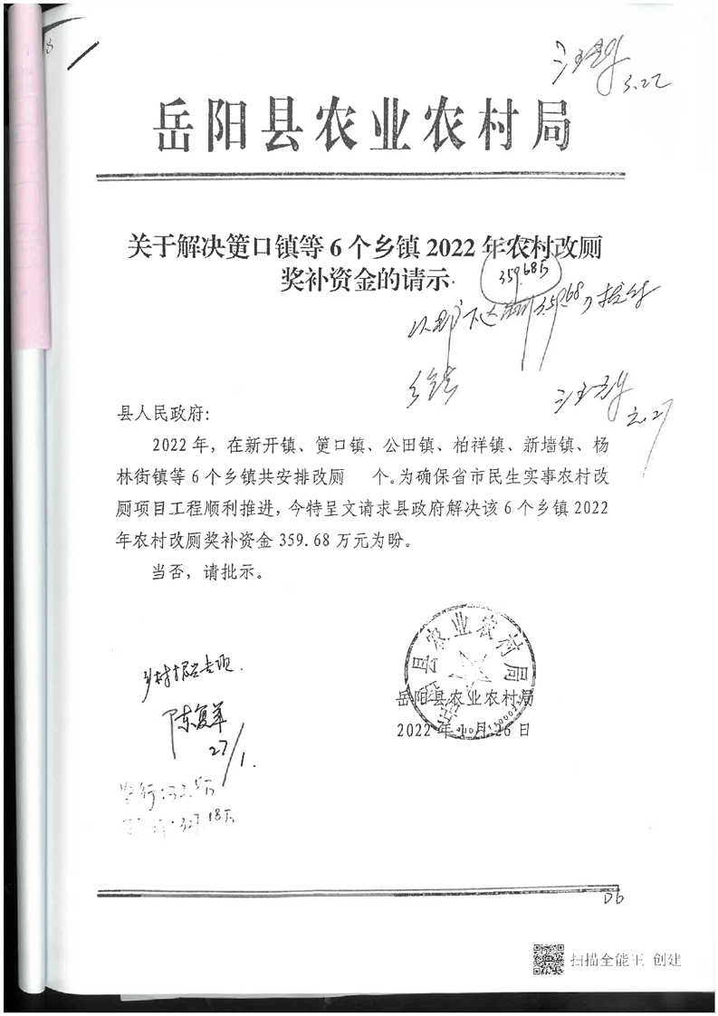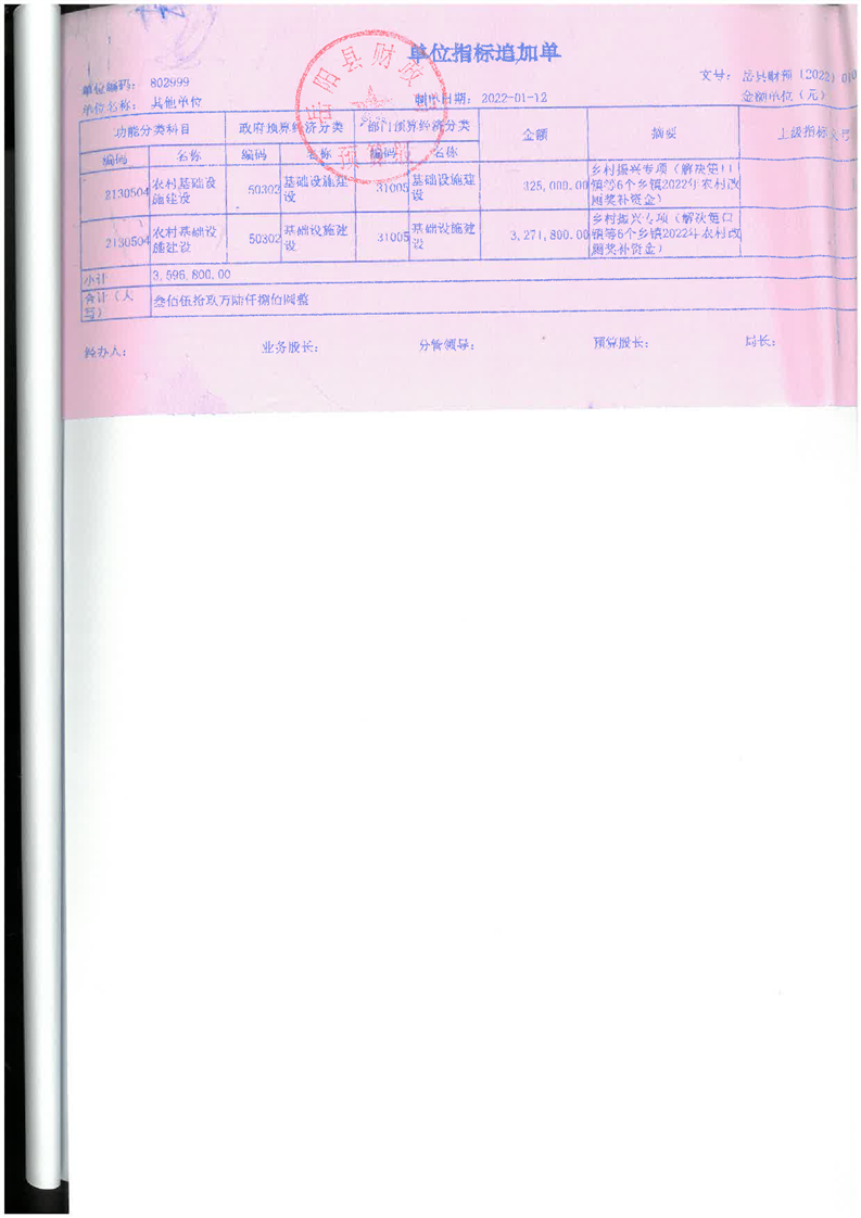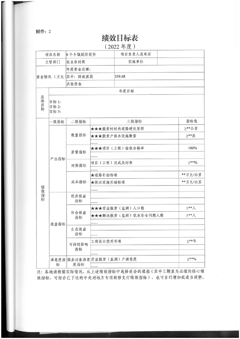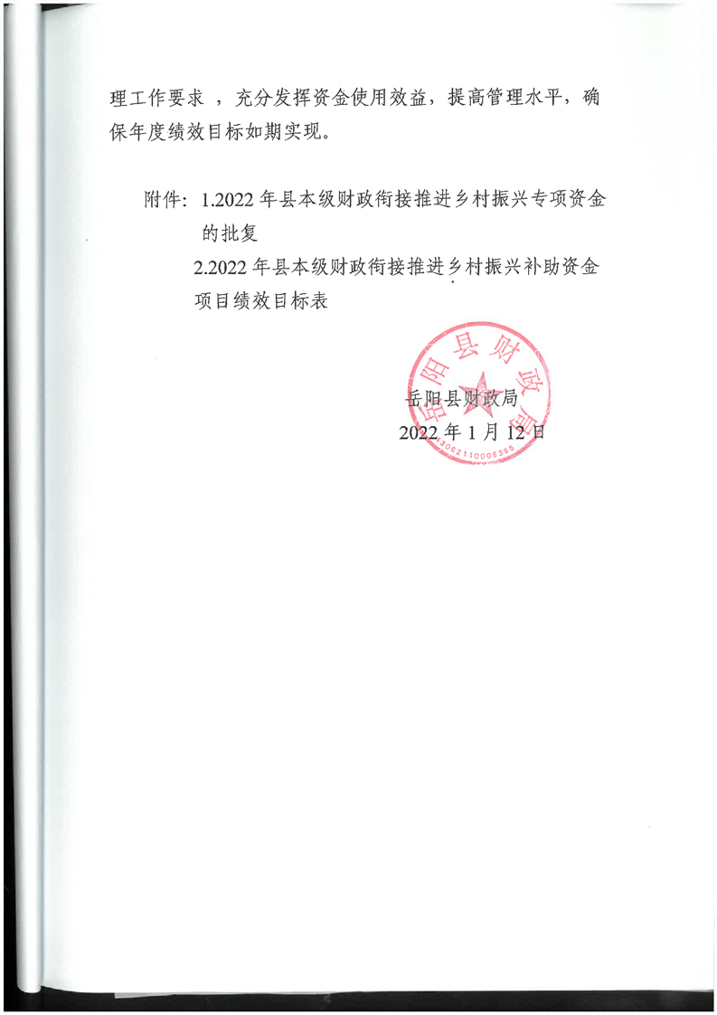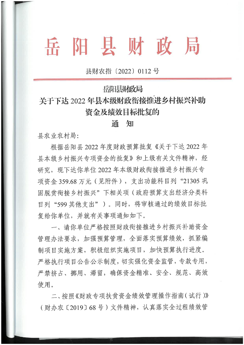 嶽陽縣財政局關於下達2022年縣本級財政銜接推進鄉村振興補助資金及績效目標批複(農業局359.68)公開公示