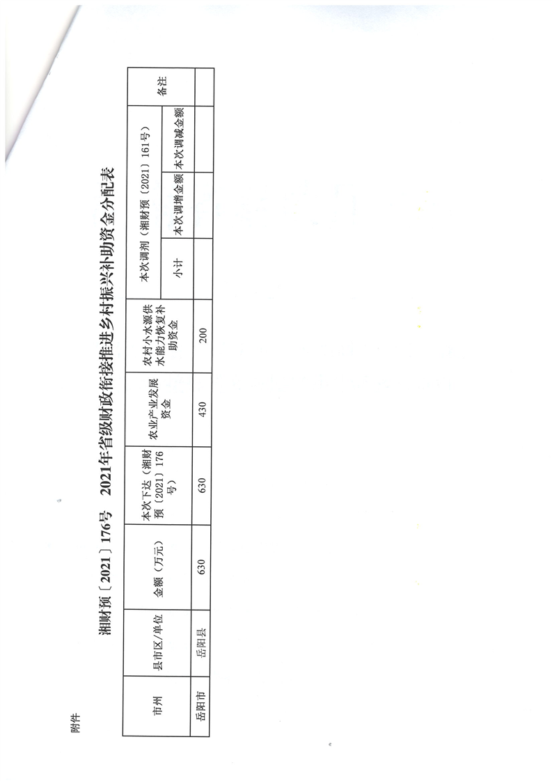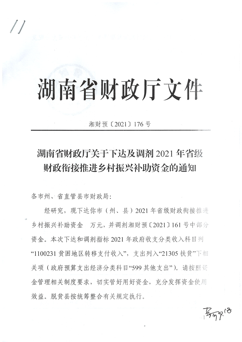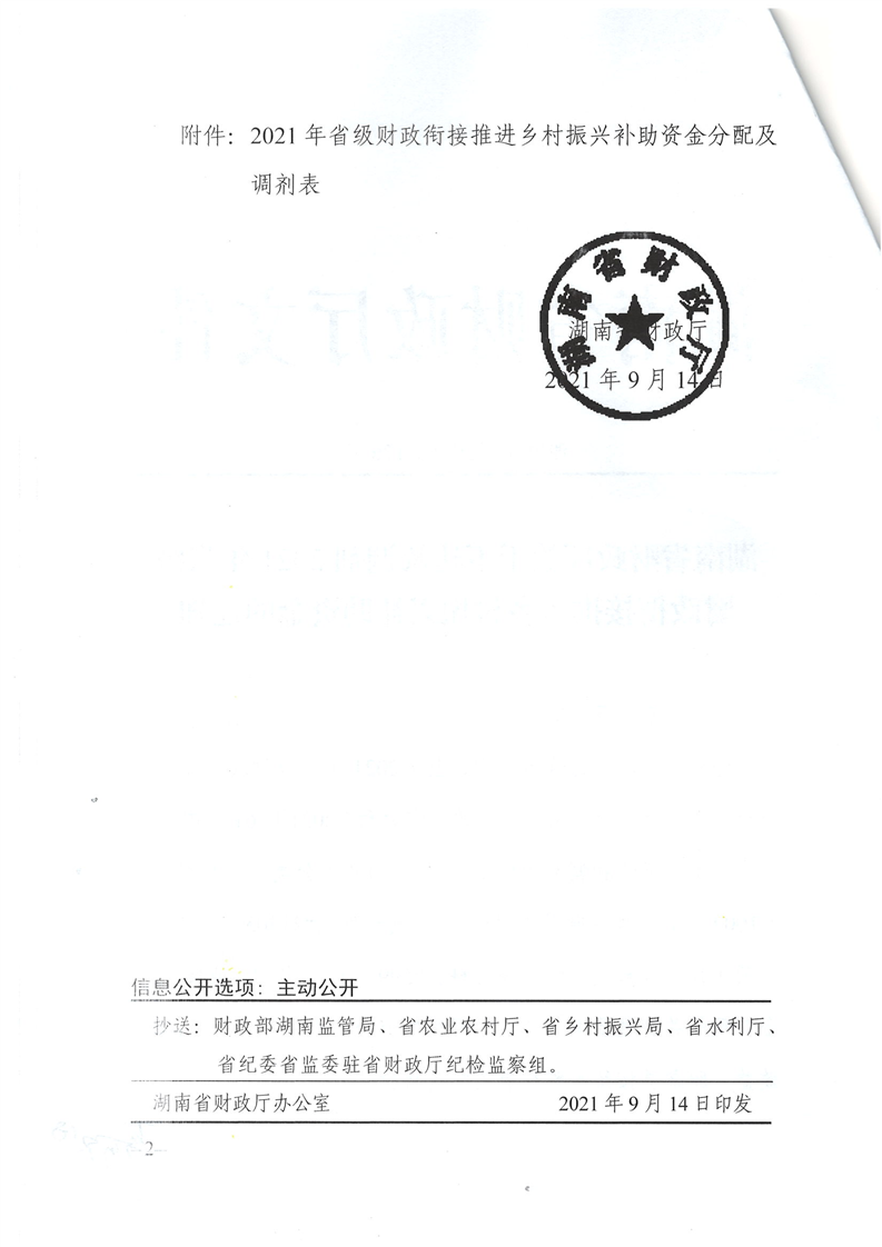 湖南省財政廳下達及調劑2021年省級財政銜接推進鄉村振興補助資金公開公示