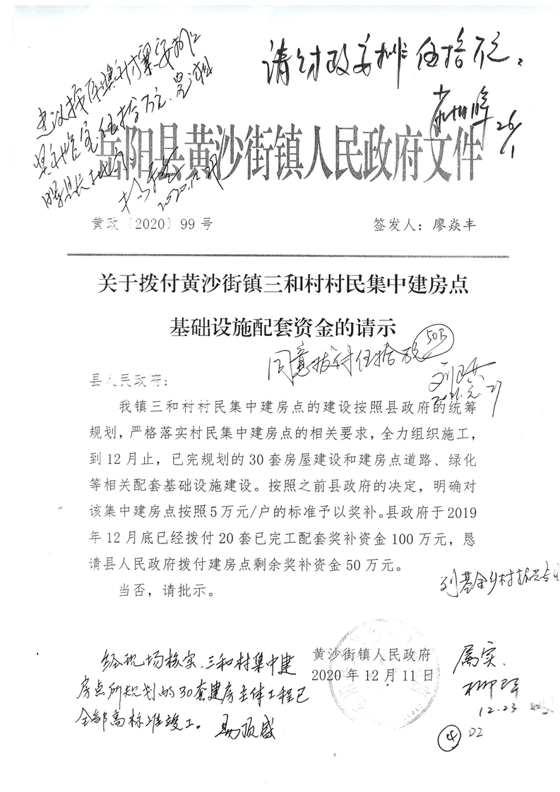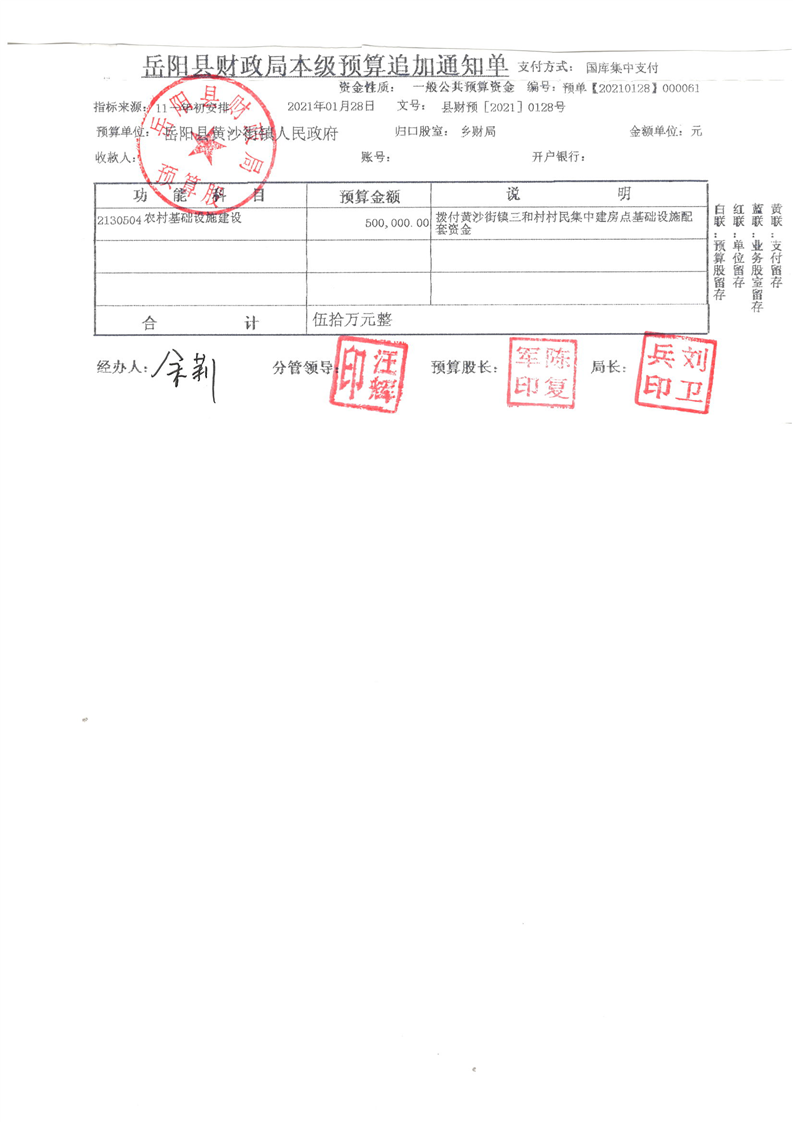 嶽陽縣下達本級財政銜接推進鄉村振興黃沙街鎮三和村村民集中建房點基礎設施配套資金公開公示