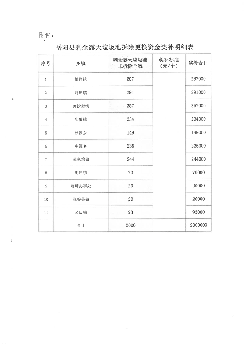 嶽陽縣本級財政鄉村振興專項(全縣露天垃圾池拆除更換獎補資金)公開公示
