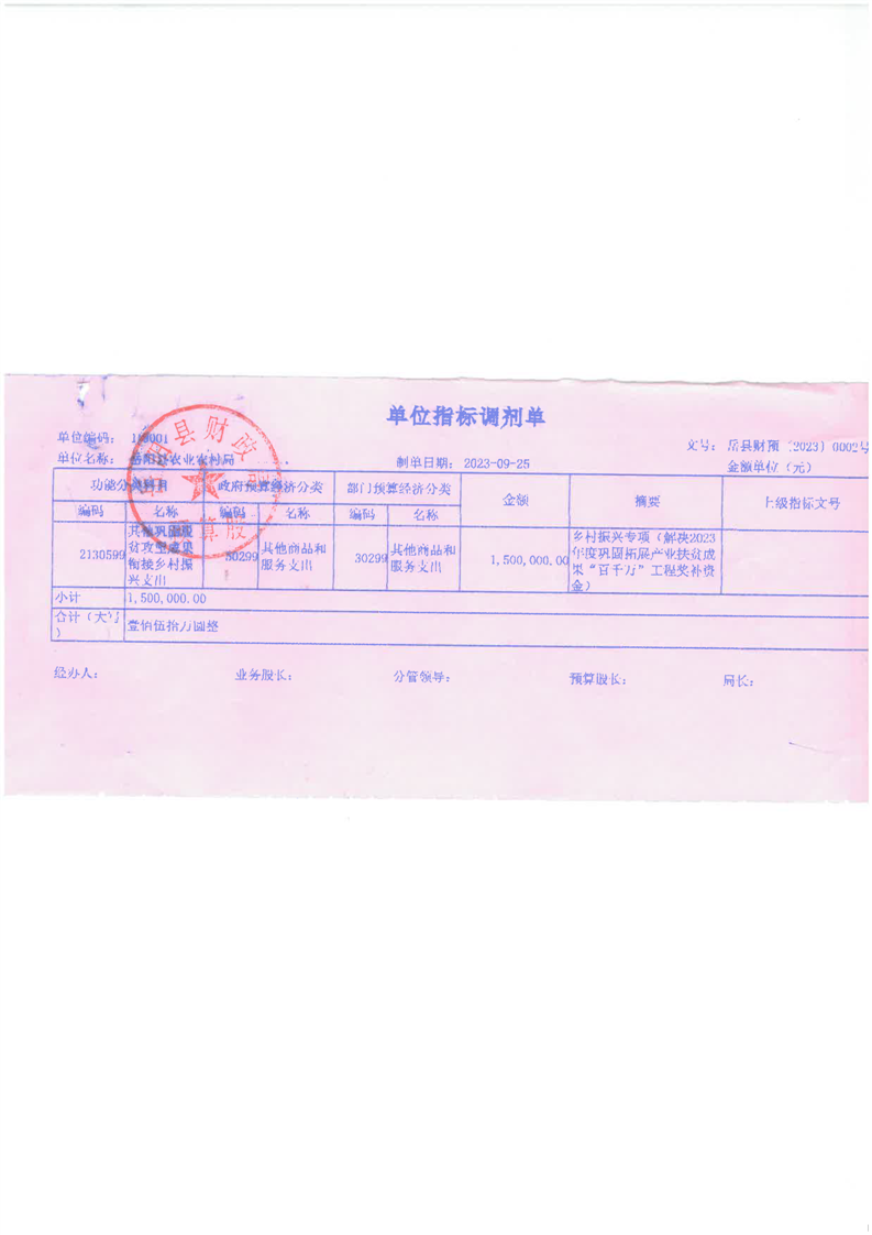 鄉村振興專項(解決2023年度鞏固拓展產業扶貧成果“百千萬”工程獎補資金)