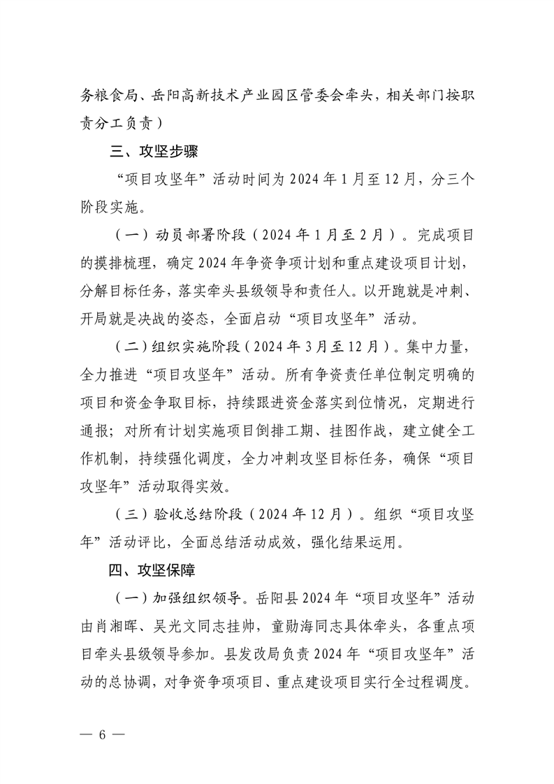 嶽陽縣2024年“項目攻堅年”活動實施方案