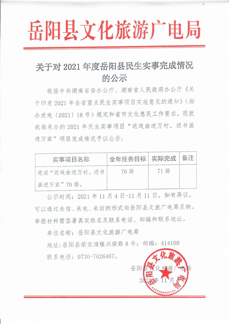 關於2021年度嶽陽縣民生實事完成情況的公示