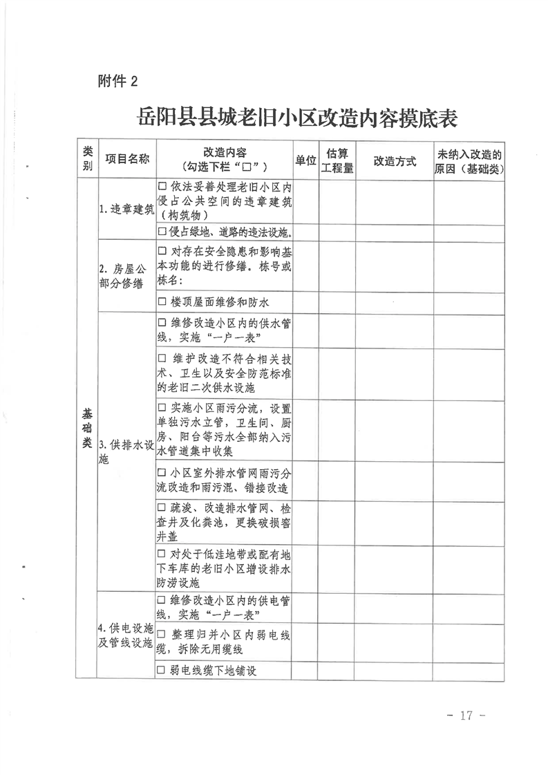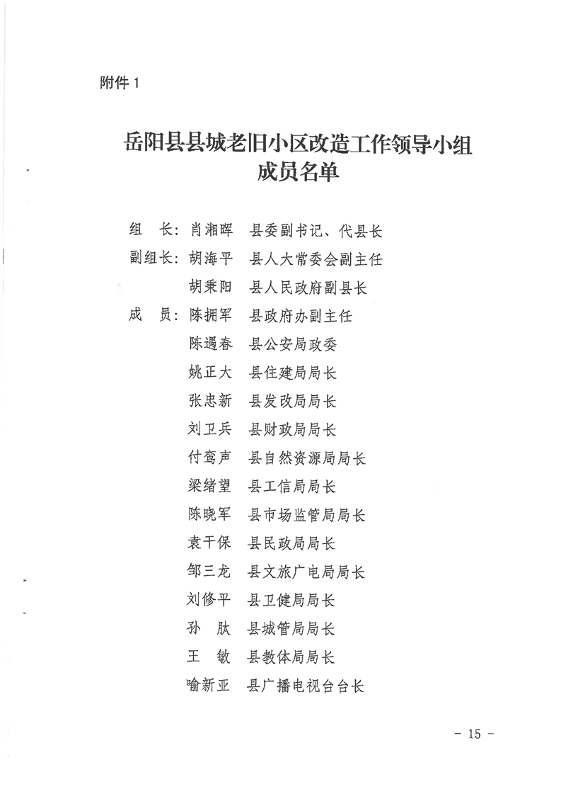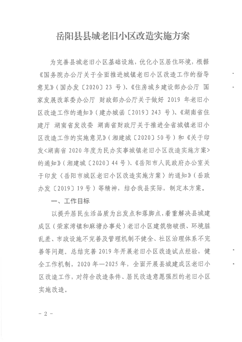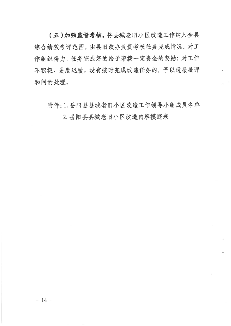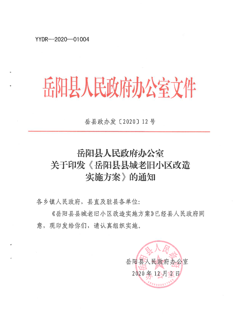 嶽陽縣人民政府辦公室關於印發《嶽陽縣縣城老舊小區改造實施方案》的通知