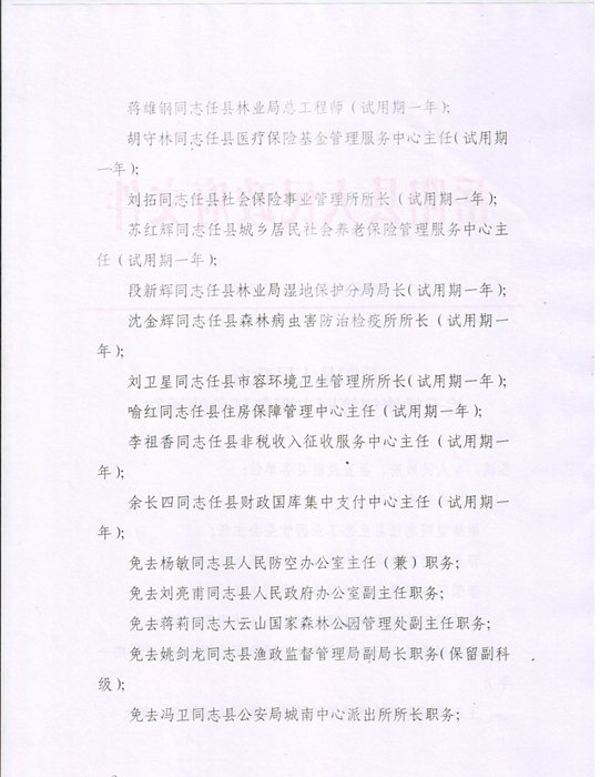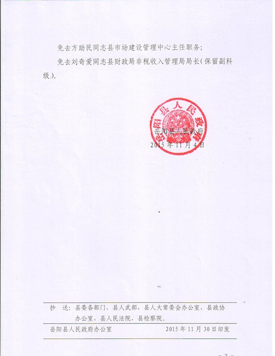 關於梁緒望等同誌職務任免的通知(嶽縣政人[2015]3號)