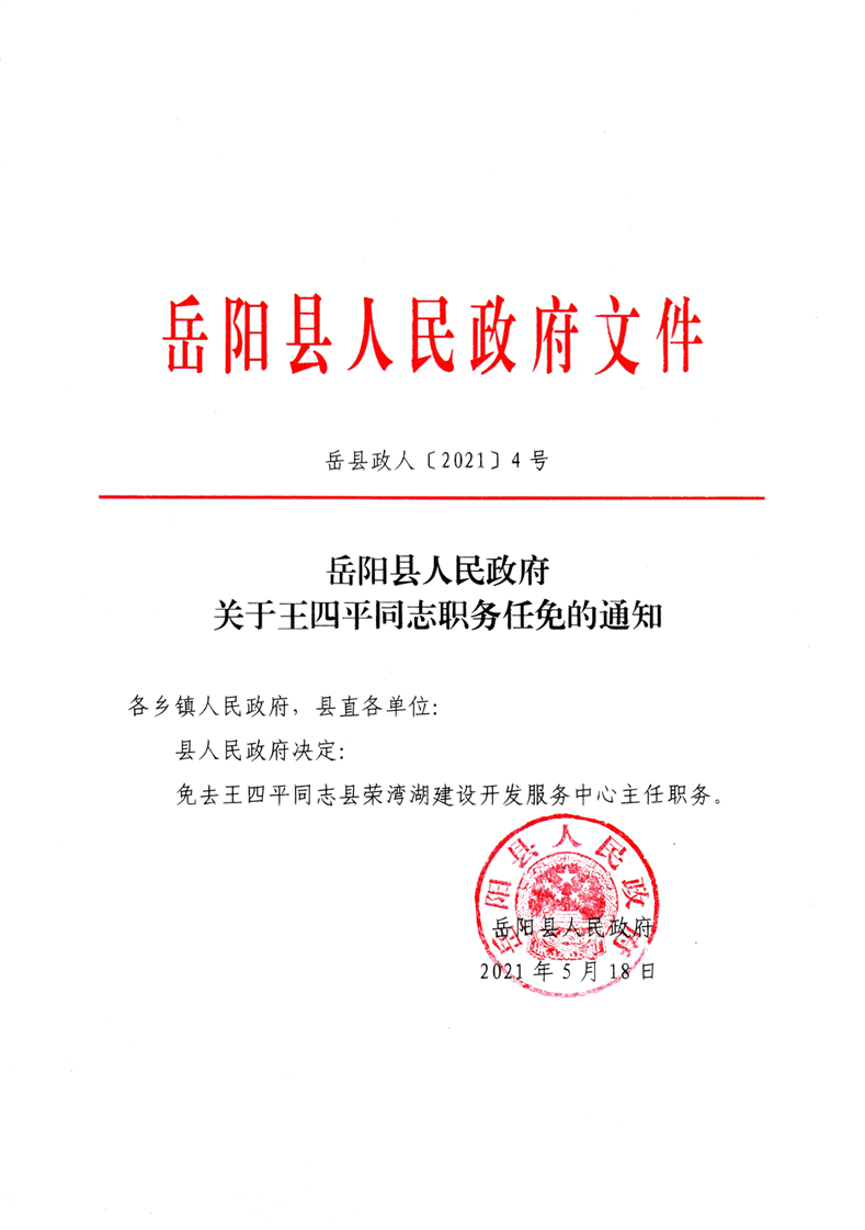 關於王四平同誌職務任免的通知