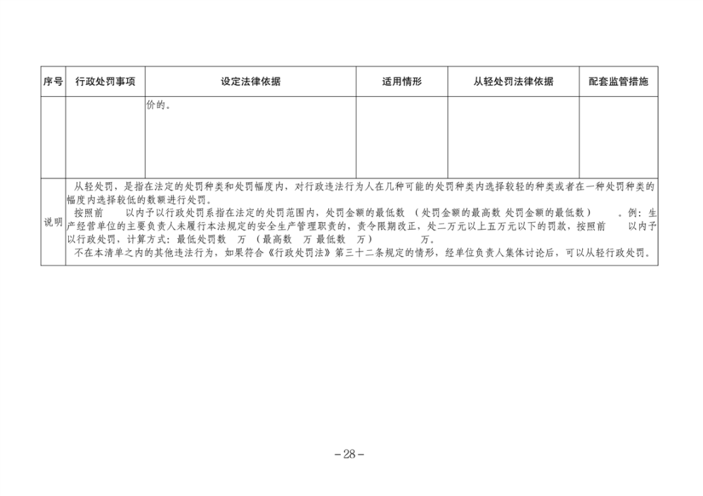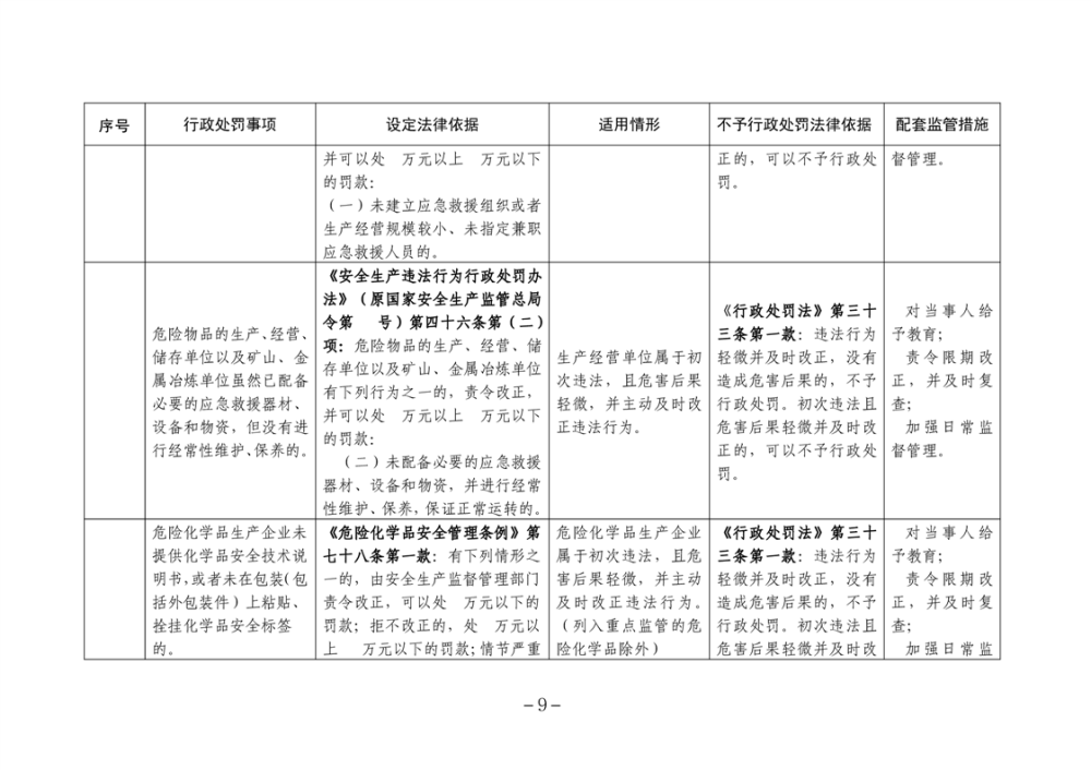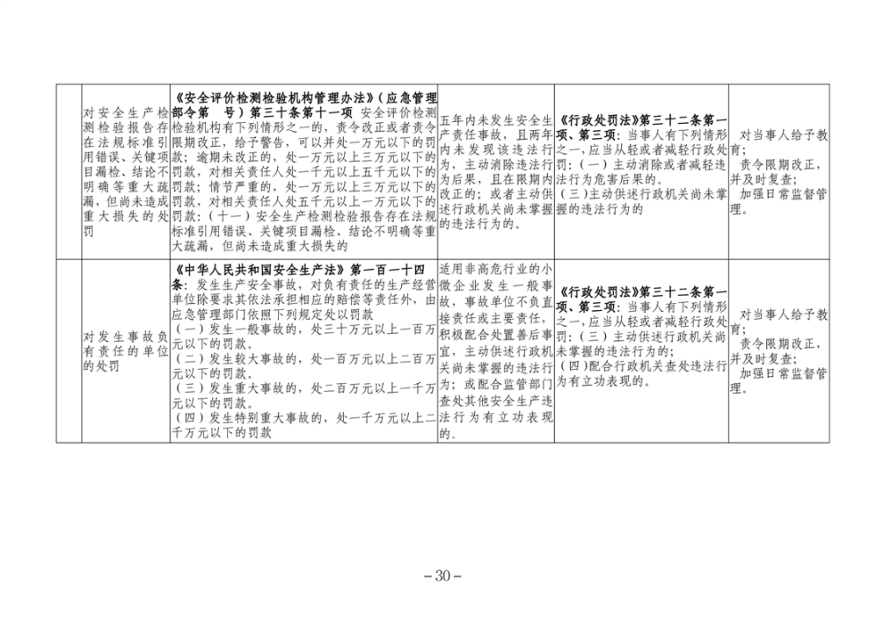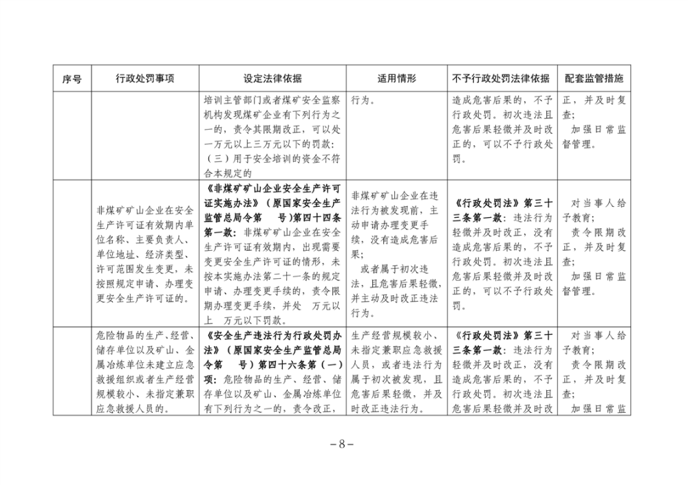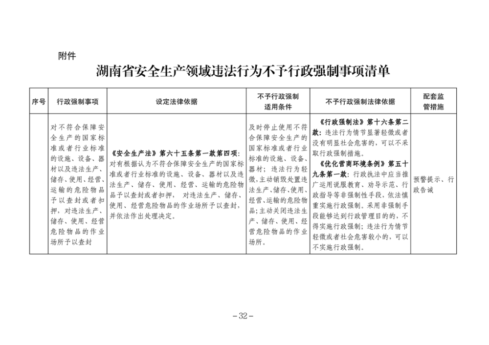 湖南省安全生產領域違法行為予行政處罰從輕行政處罰減輕行政處罰不予行政強製事項清單