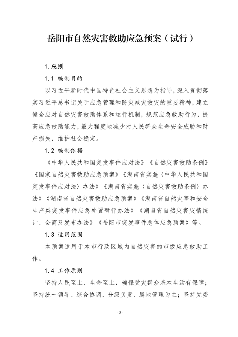 嶽陽市自然災害救助應急預案(試行)