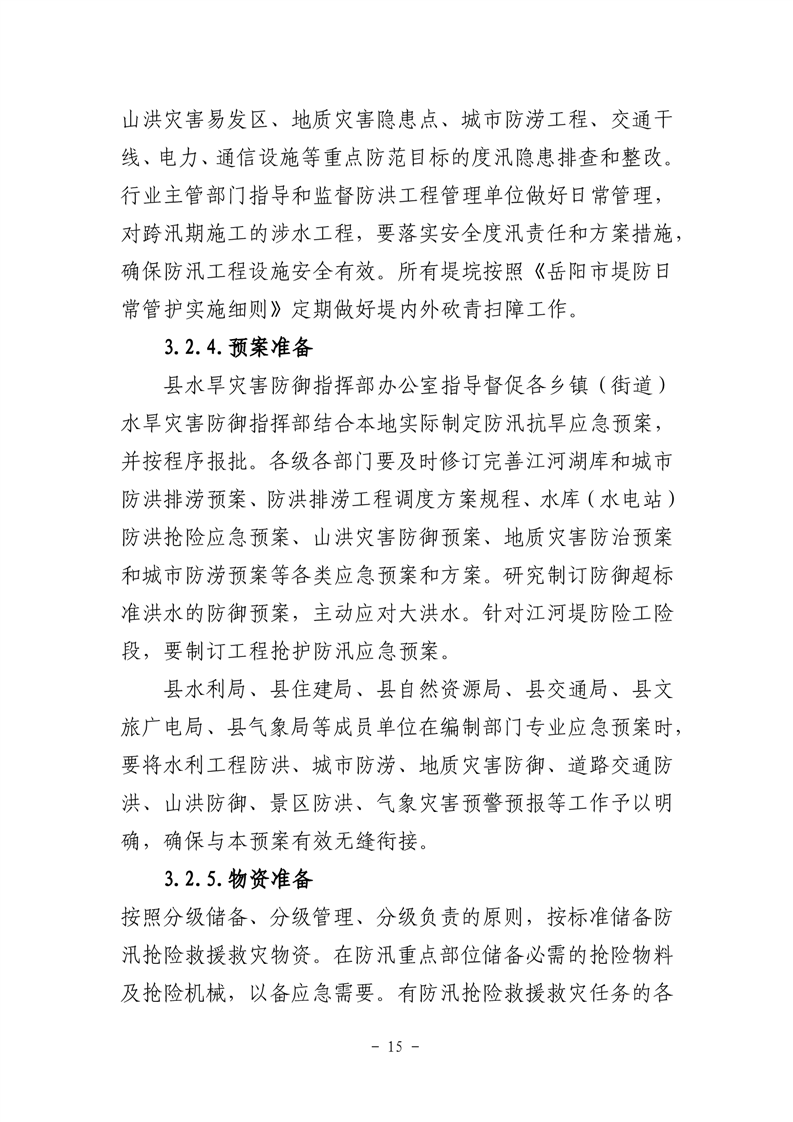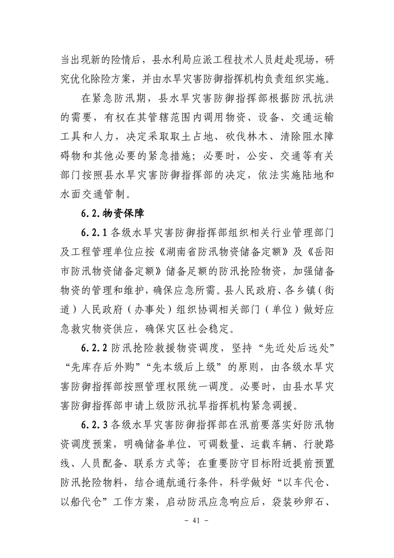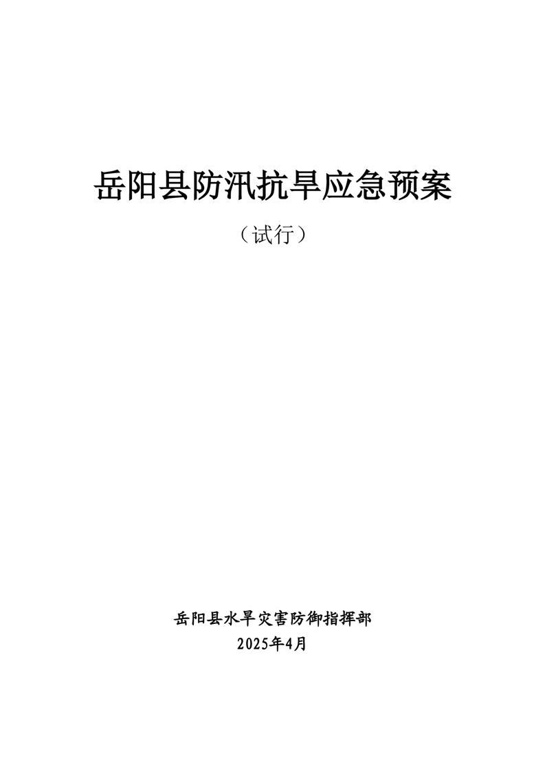 嶽陽縣防汛抗旱應急預案(試行)