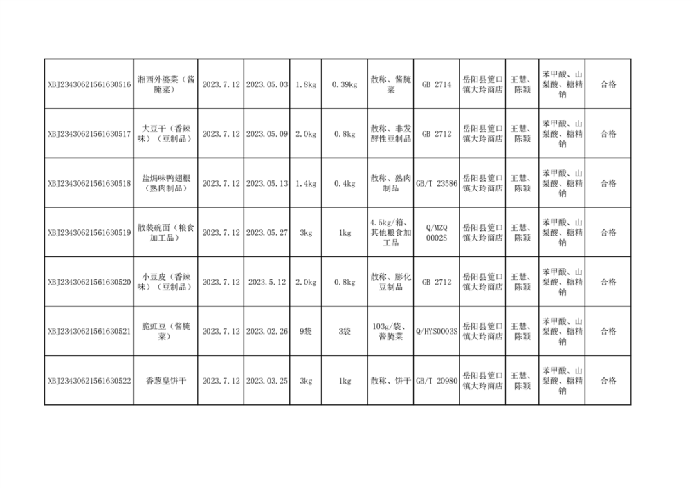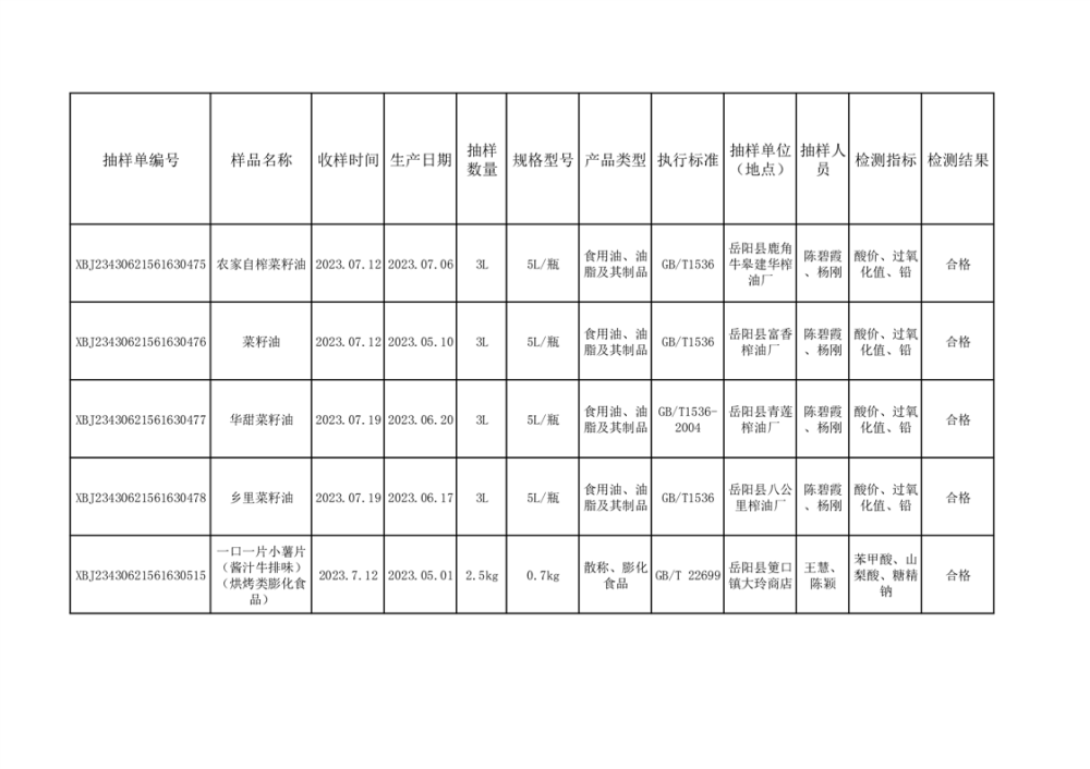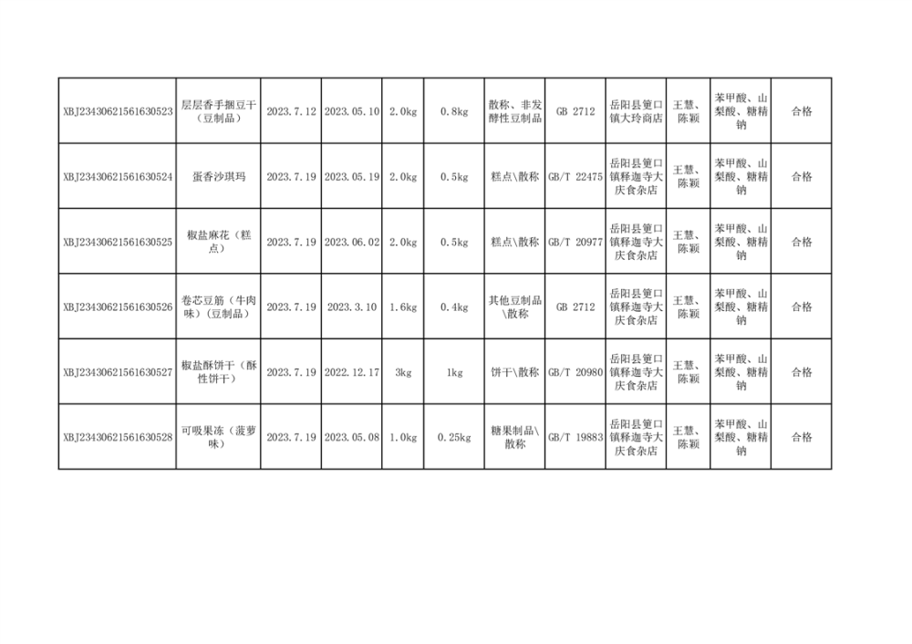 2023年7月合格品公示(18批次)