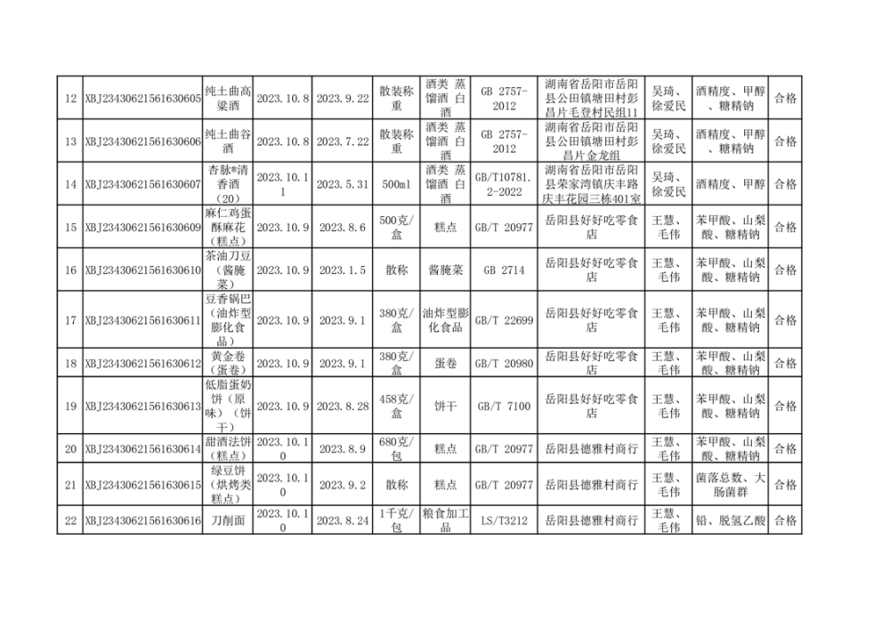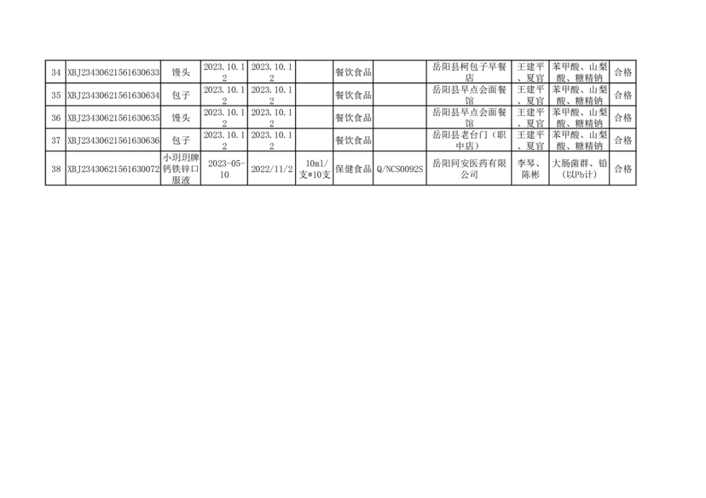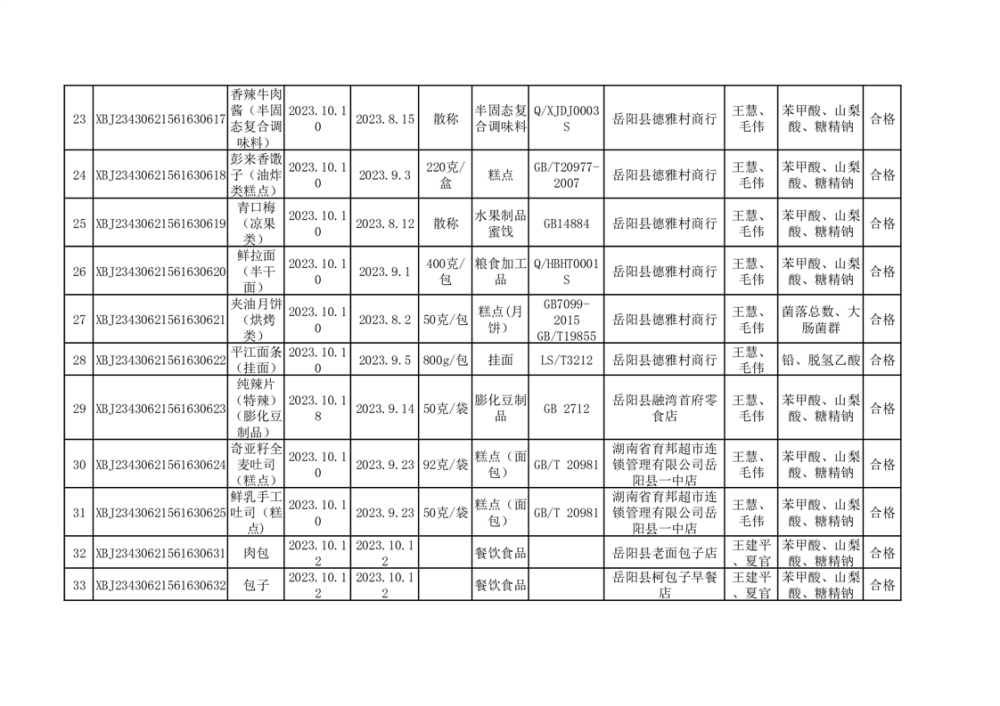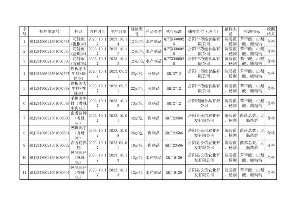 2023年10月合格品公示(38批次)