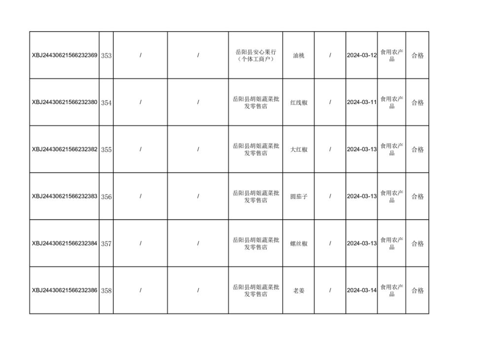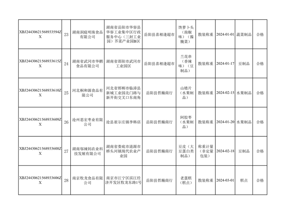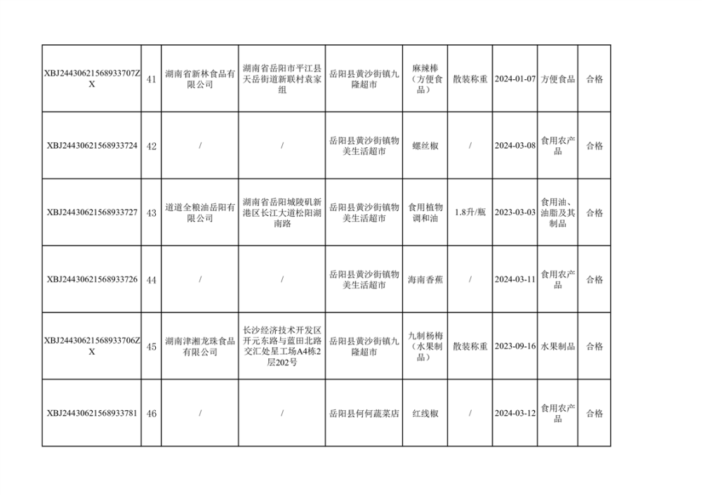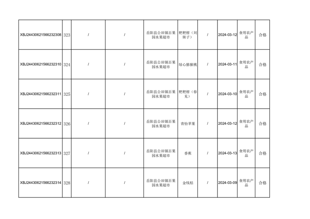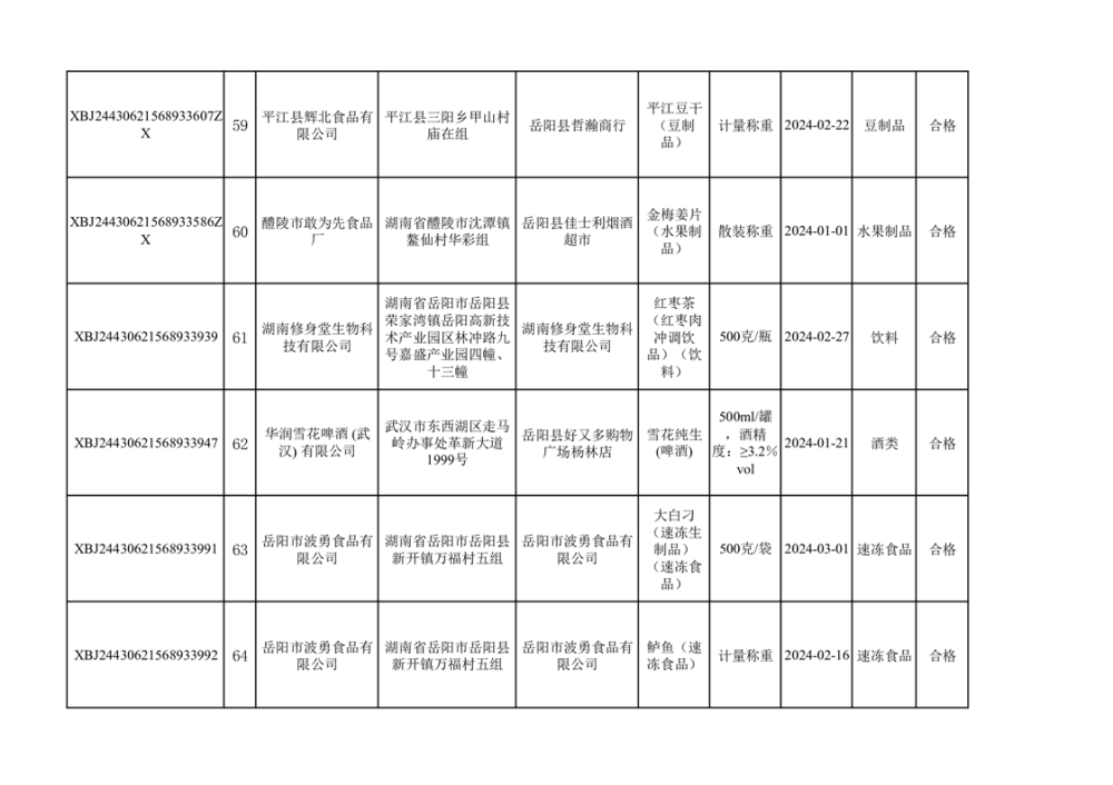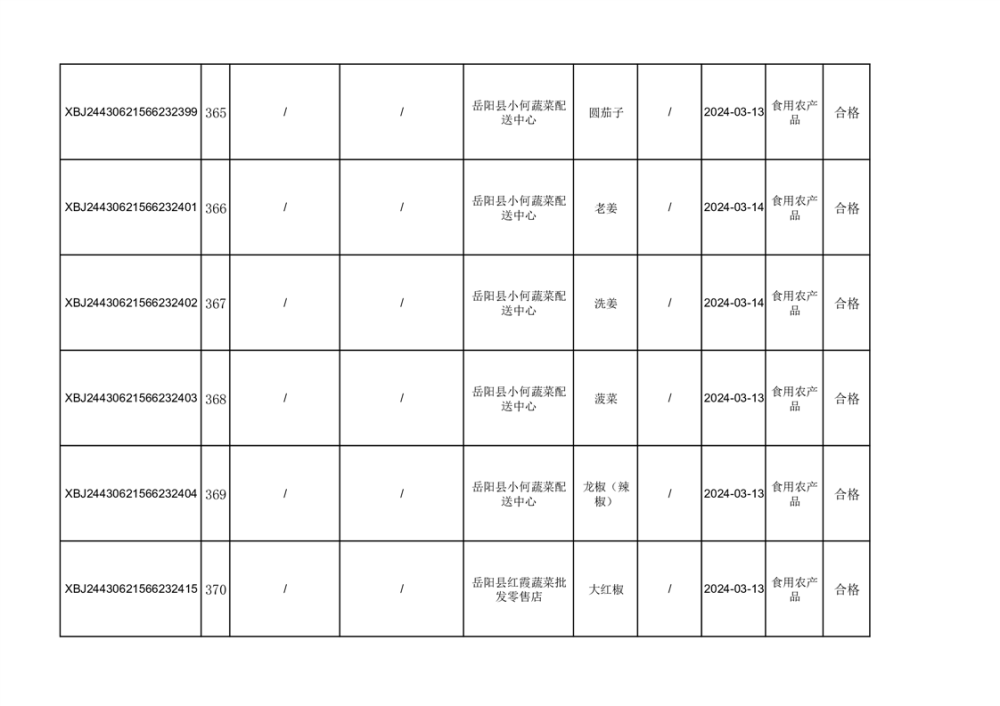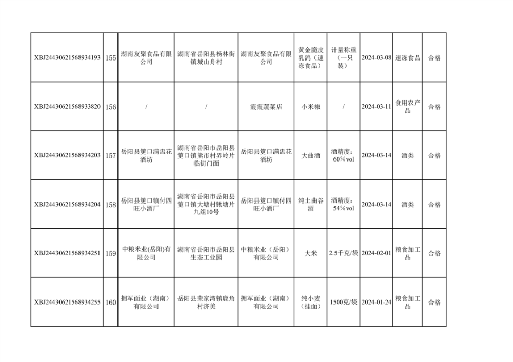 2024年3月份食品抽檢合格數據公示(372批次)