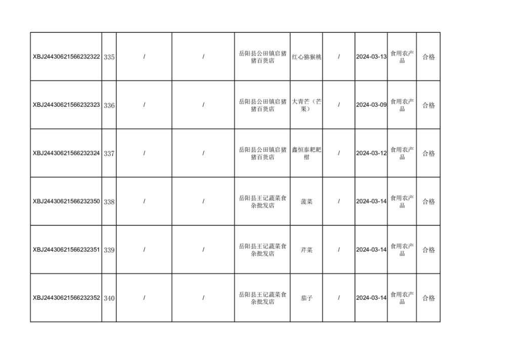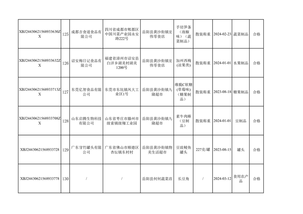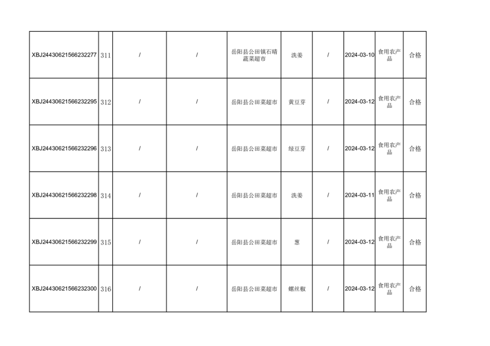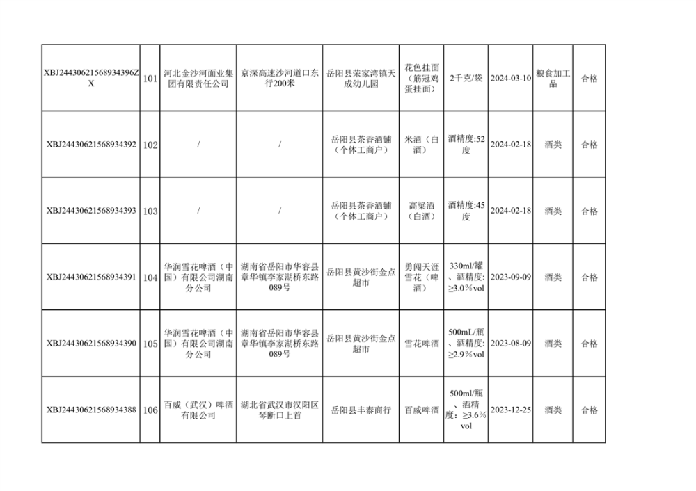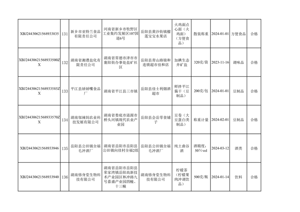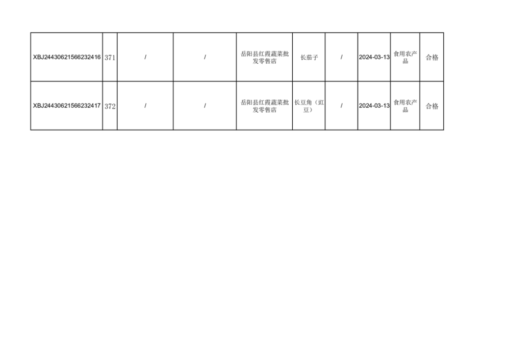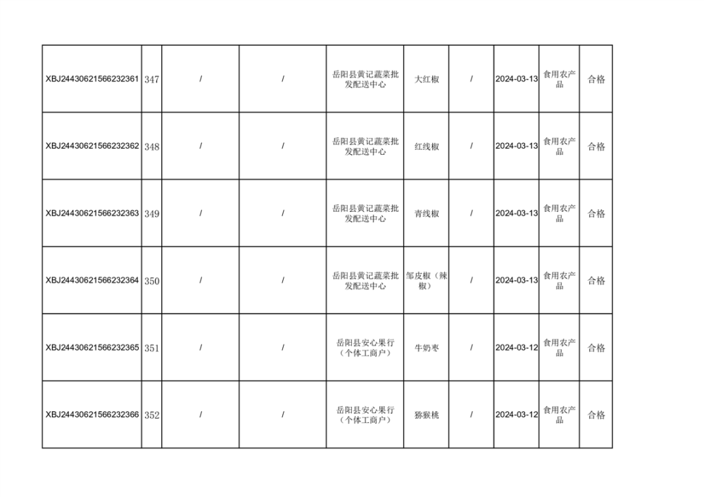 2024年3月份食品抽檢合格數據公示(372批次)