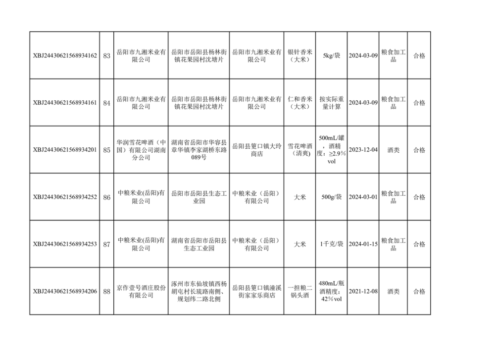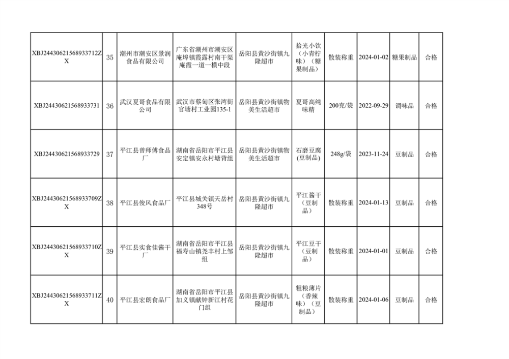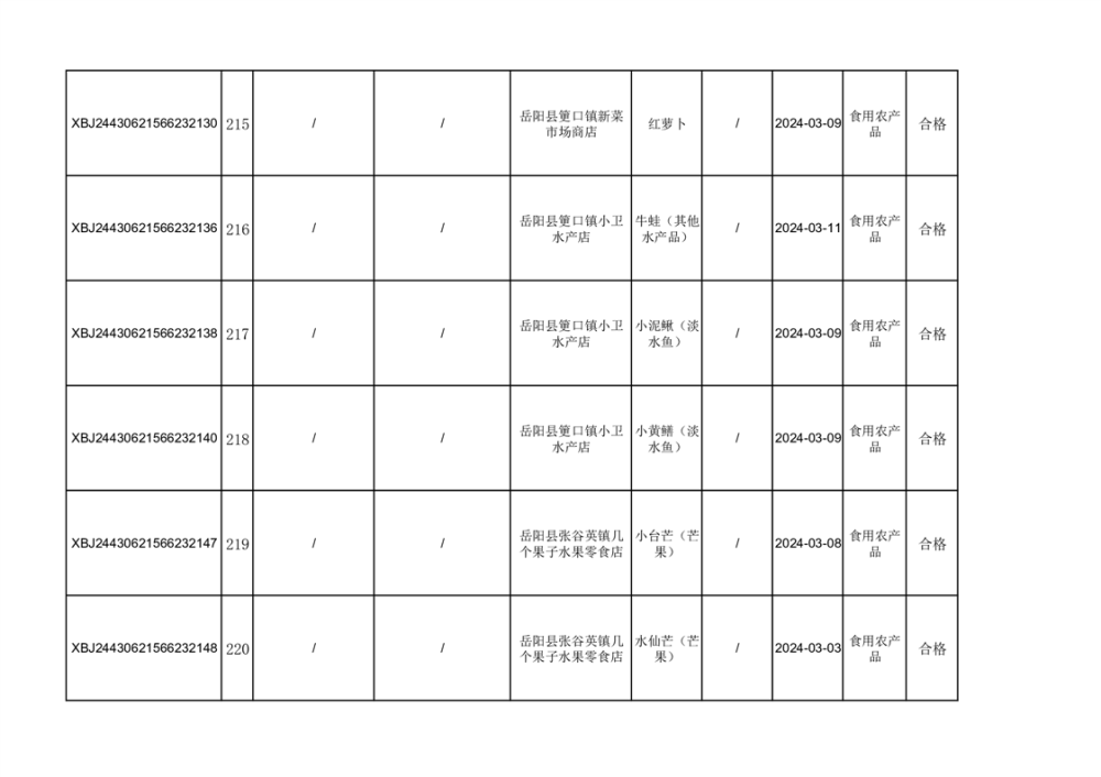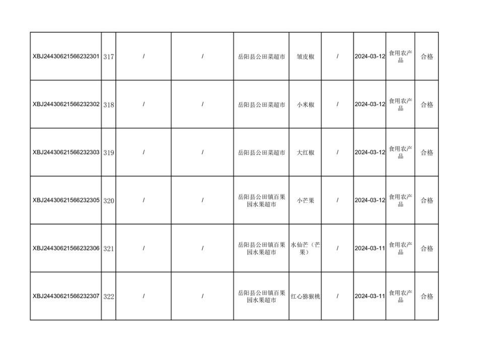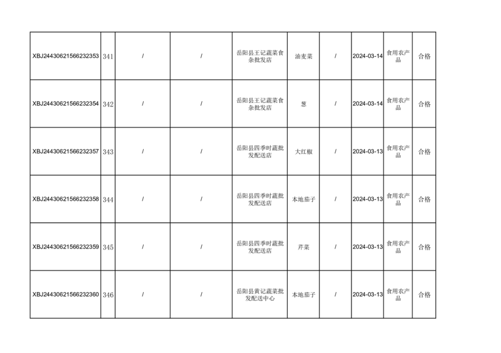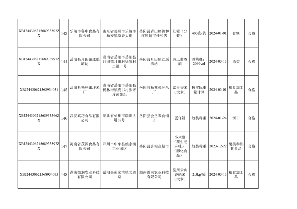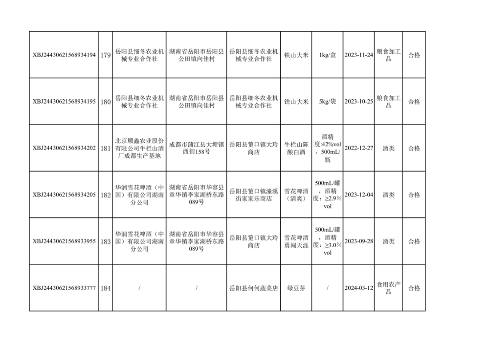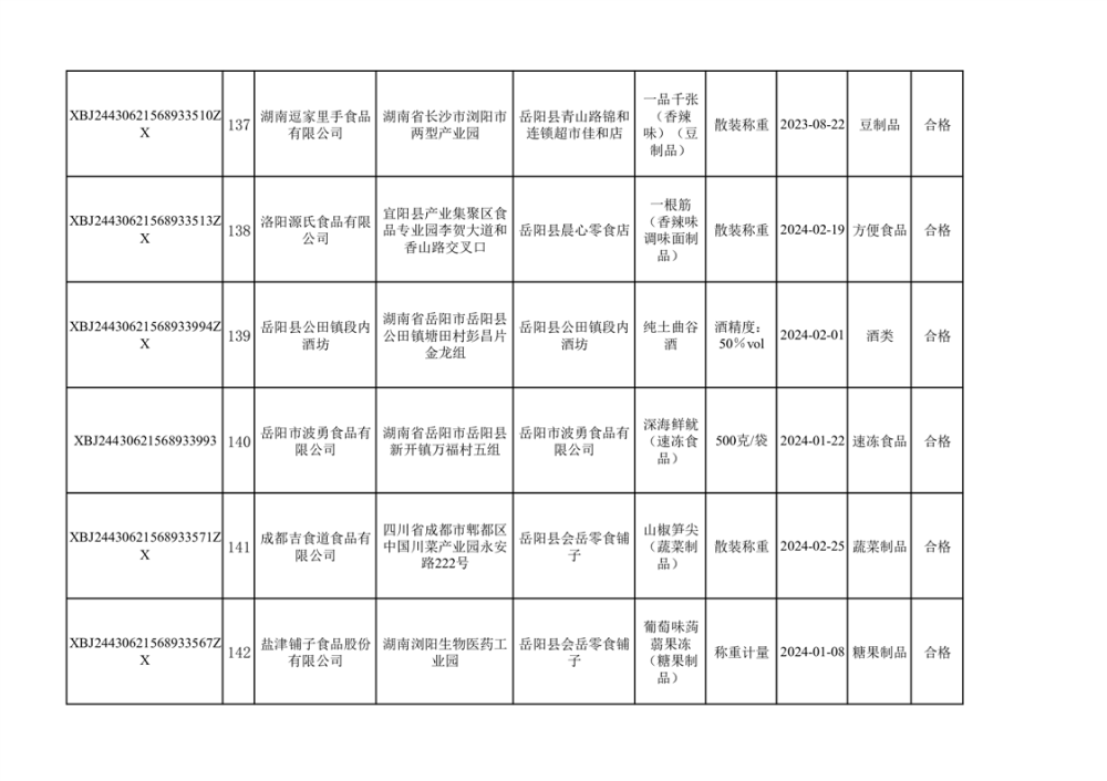 2024年3月份食品抽檢合格數據公示(372批次)