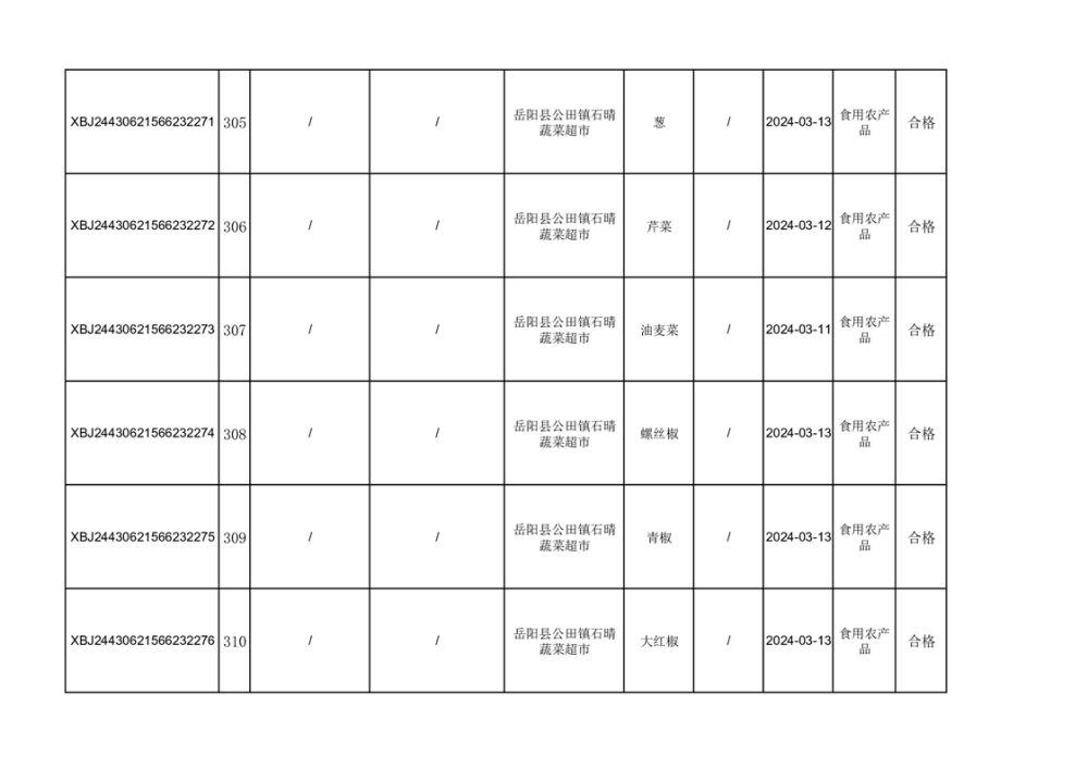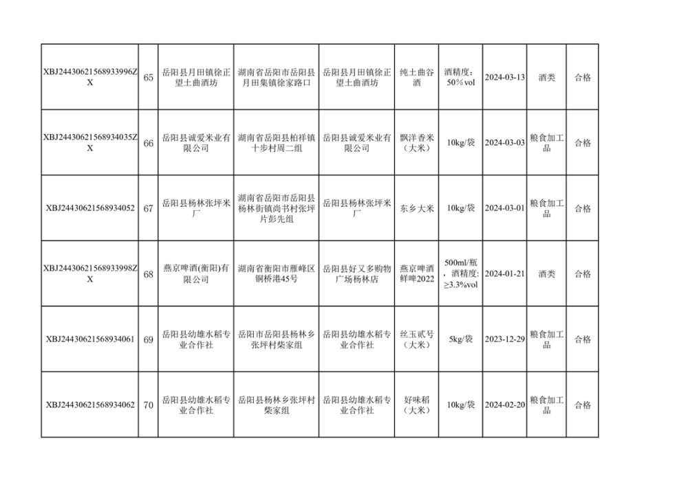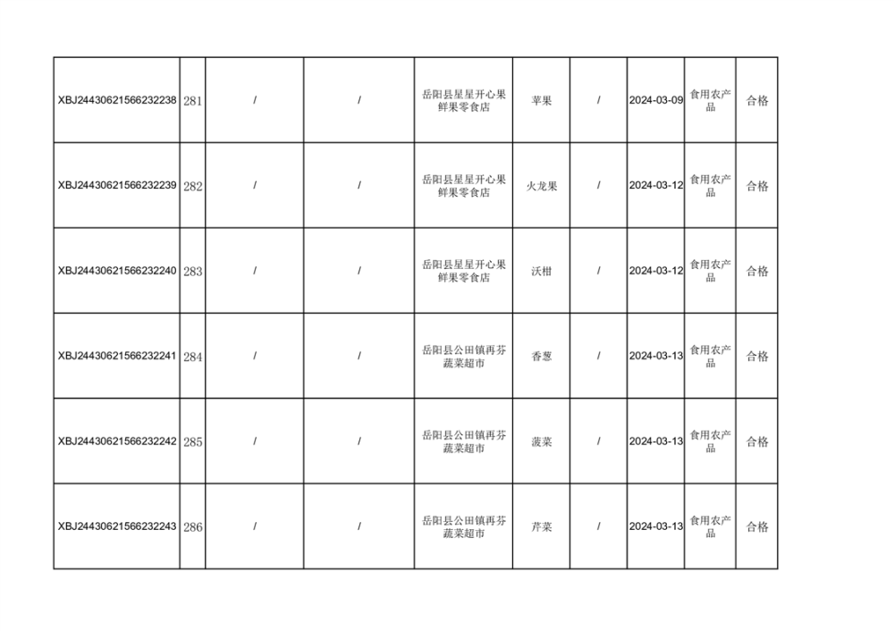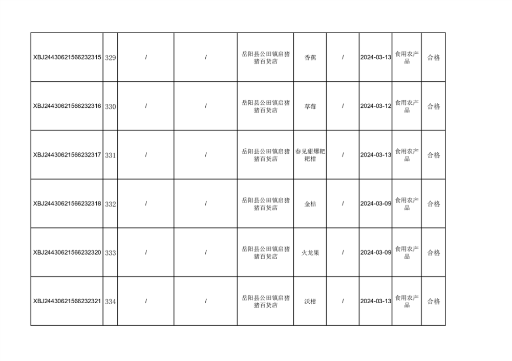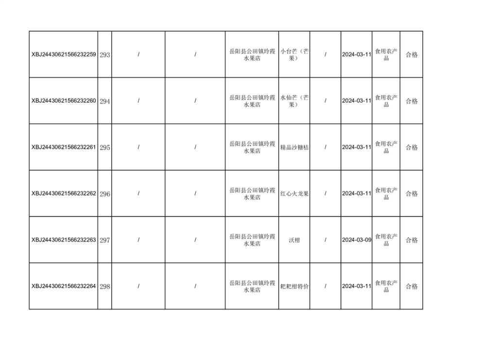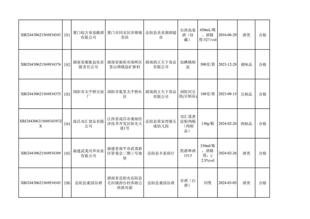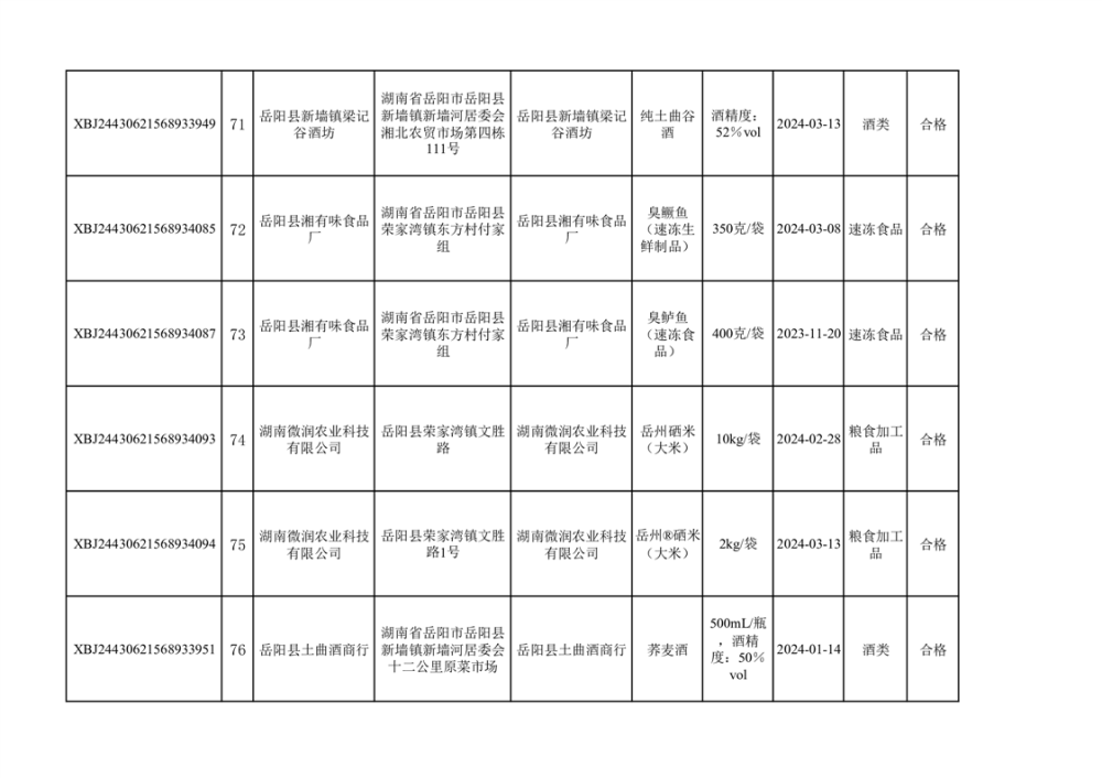 2024年3月份食品抽檢合格數據公示(372批次)