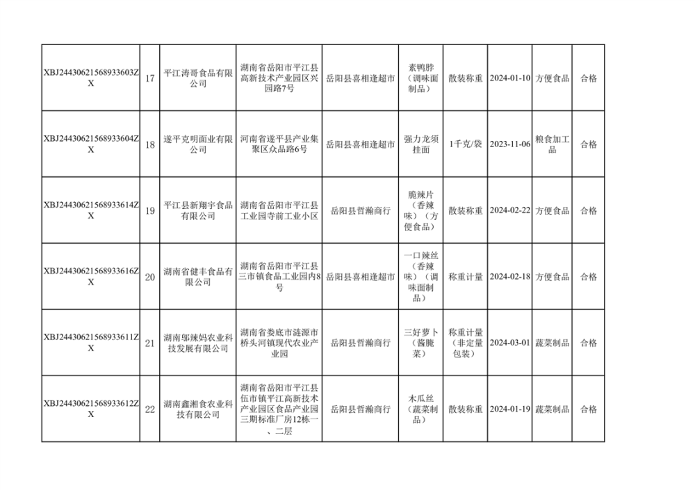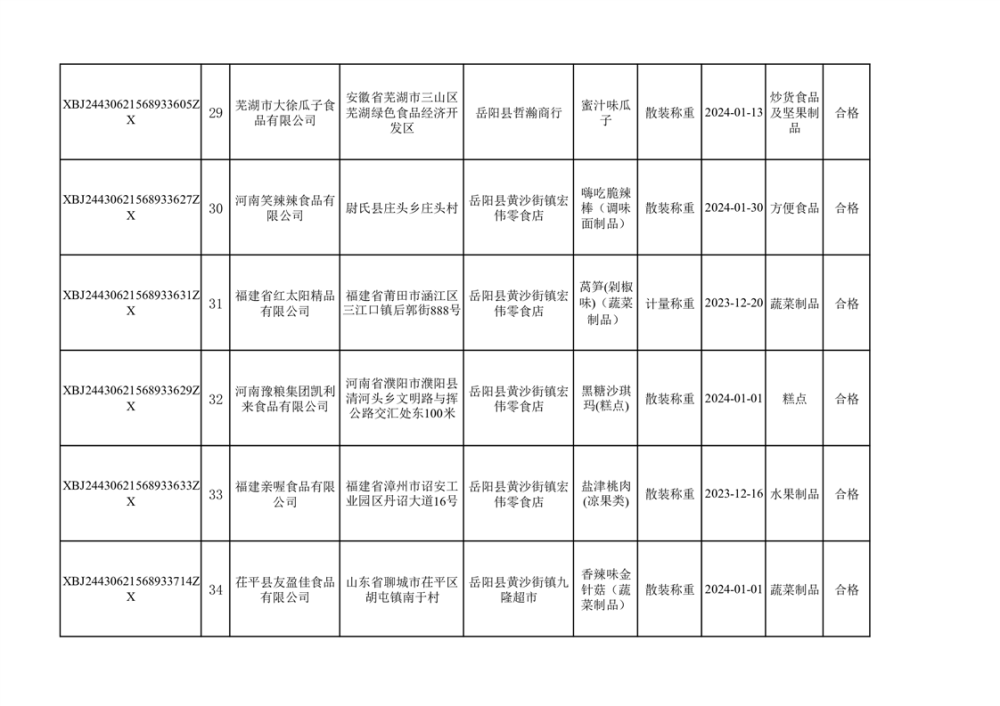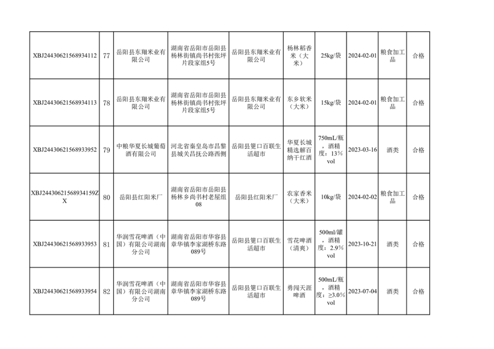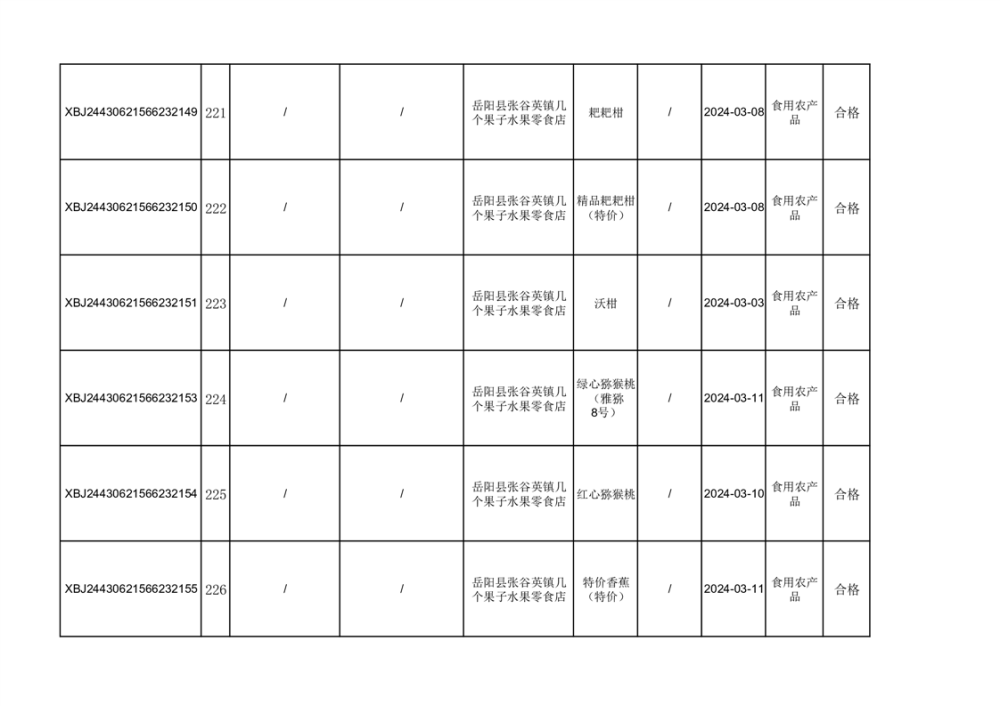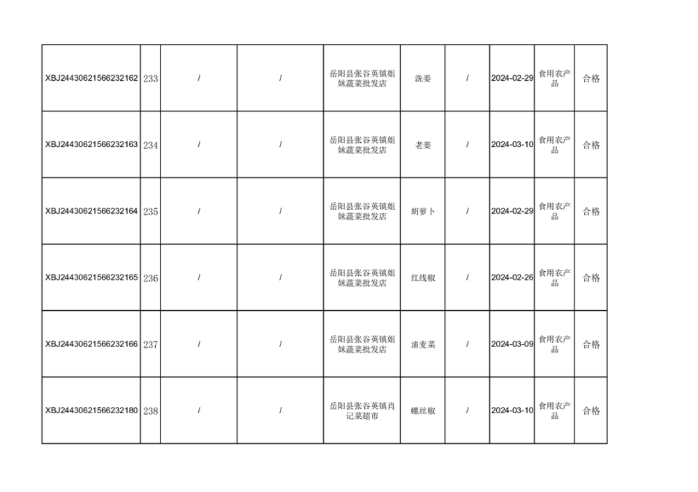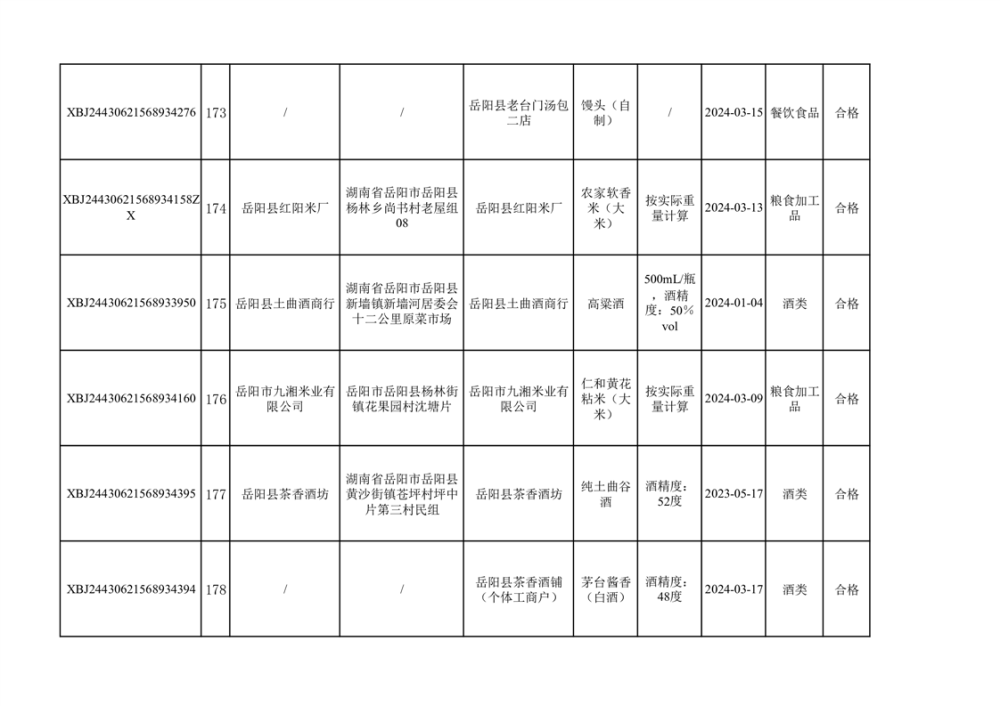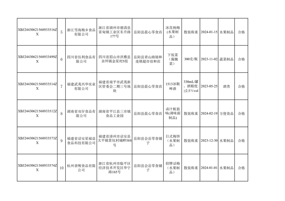 2024年3月份食品抽檢合格數據公示(372批次)