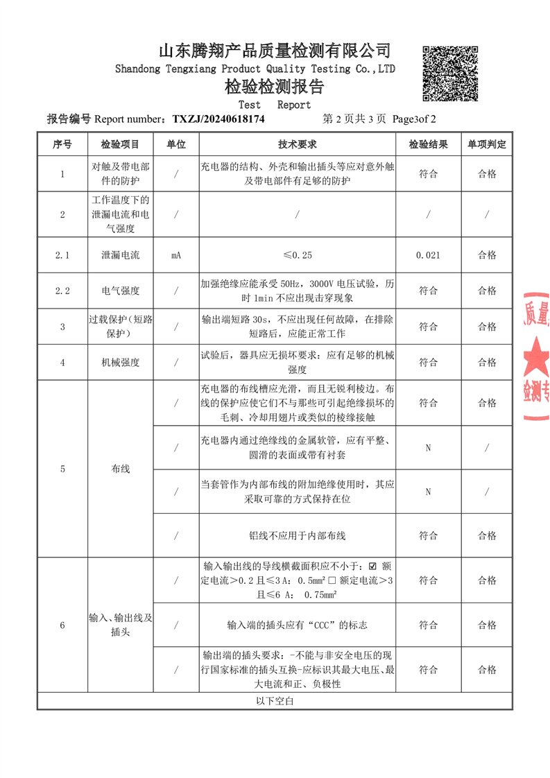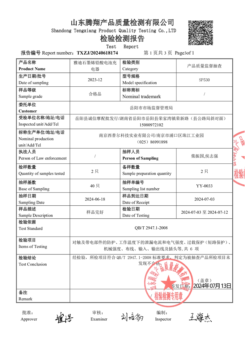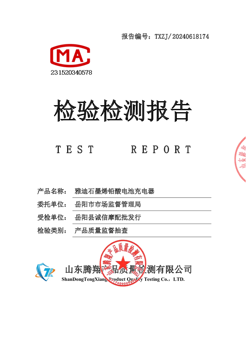 檢驗檢測報告(雅迪石墨烯鉛酸電池充電器)