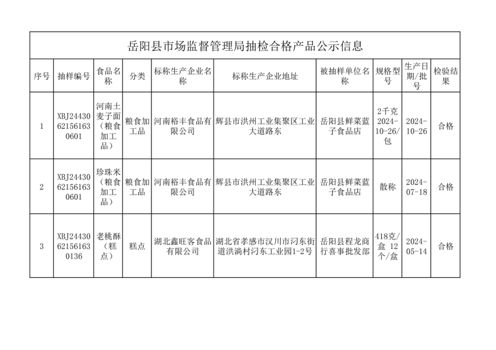2024年產品抽檢數據公示(補錄3批次)