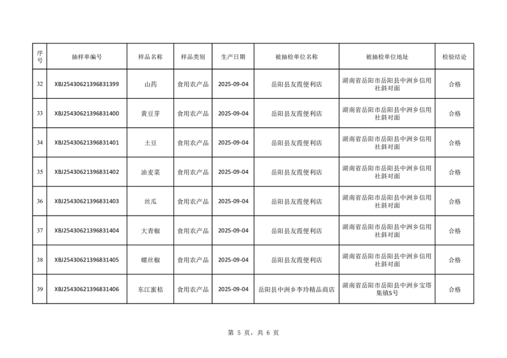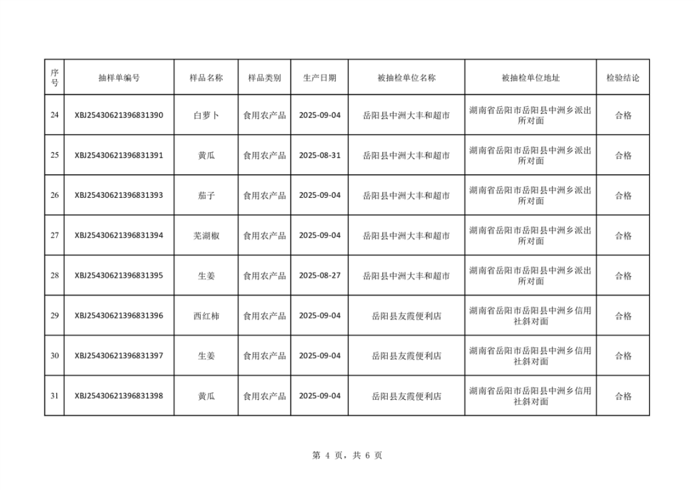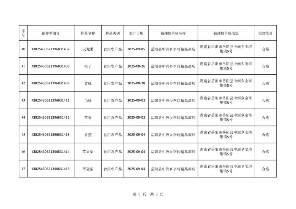 2025年10月16日抽檢數據公示(合格47批次-華中)