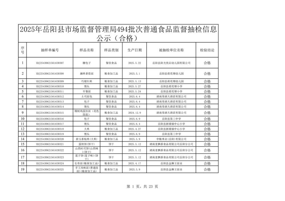 2025年12月18日抽檢數據公示(合格494批次-檢測中心)