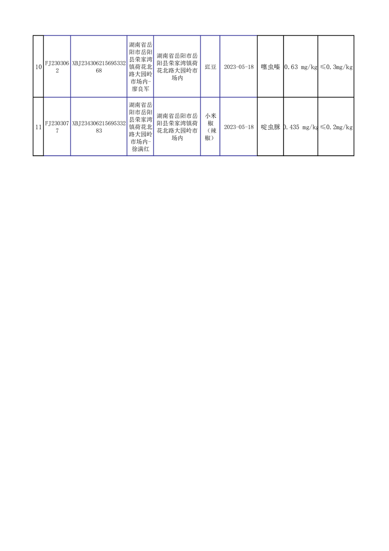 2023年5月抽檢不合格品公示(11批次)