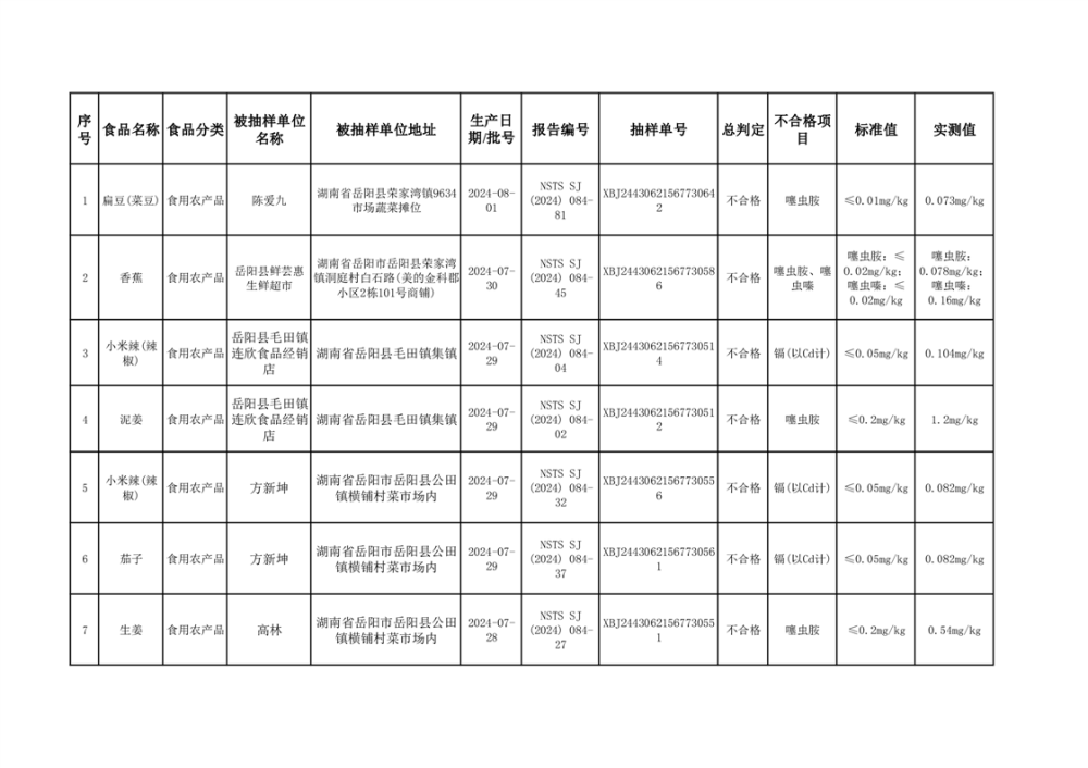 2024年9月18日食品抽檢數據公示(不合格7批次)