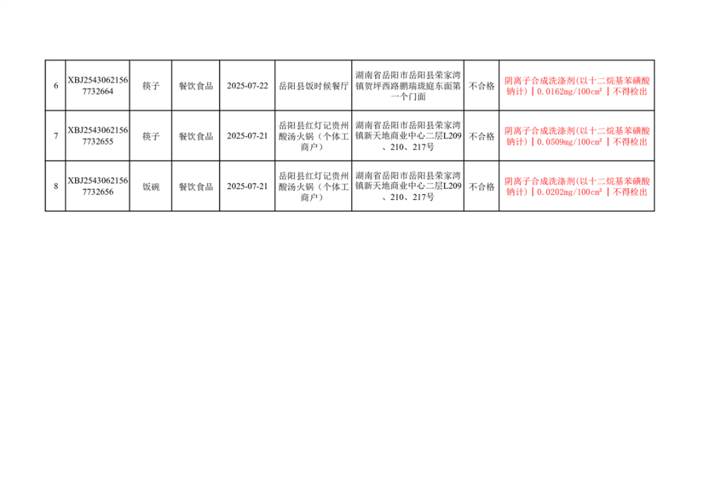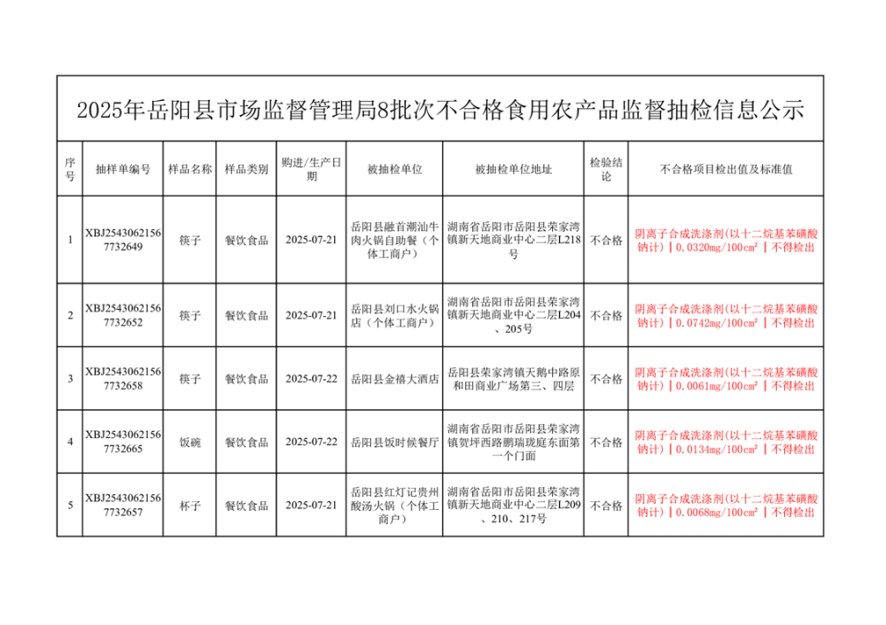 2025年10月14日抽檢數據公示(不合格8批次)