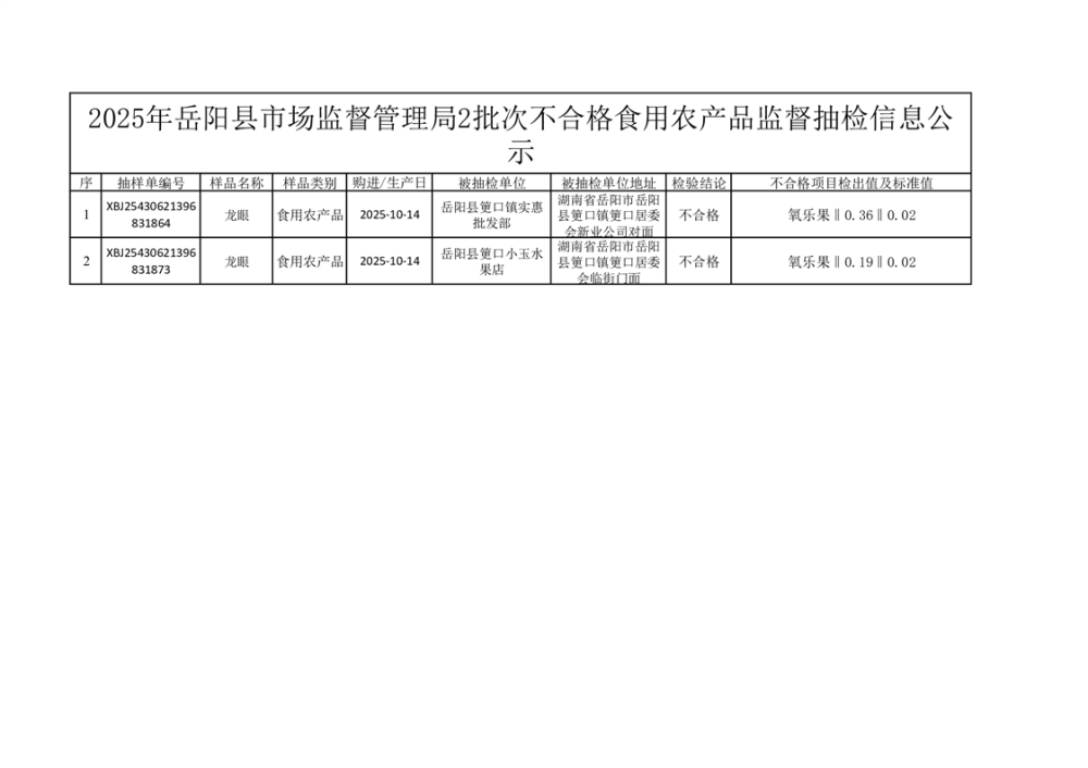 2025年11月24日抽檢數據公示(不合格2批次-華中)