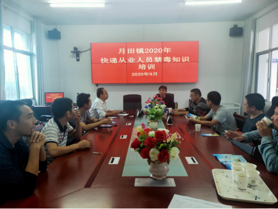 9月24日,月田鎮禁毒辦、綜治辦、司法所再次組織全鎮5家快遞從業人員進行禁毒知識培訓。
