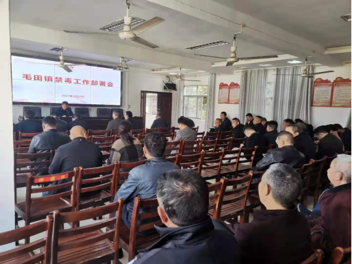 為進一步貫徹落實上級會議精神,紮實做好2021年禁毒工作。3月22日上午,毛田鎮召開了2021年禁毒工作部署會。毛田鎮黨政班子成員、全體機關幹部、村總支書記及禁毒專幹參加了會議。會議總結了2020年度全鎮禁毒工作情況,傳達和學習了上級會議精神,安排部署了2021年禁毒工作。