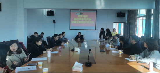 榮家灣鎮為加強幹部職工的毒品預防教育,提高幹部職工的識毒、防毒、拒毒意識,調動幹部職工參與禁毒鬥爭的積極性,營造濃厚的禁毒工作氛圍,4月8日上午,鎮禁毒站組織全鎮30餘名聯點幹部參與禁毒業務知識培訓會。