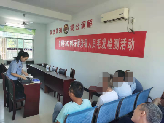 為進一步加強吸毒人員管控,切實強化管控措施,全麵推進吸毒人員毛發檢測工作。9月10日,中洲鄉禁毒辦聯合嶽陽縣禁毒辦、中洲派出所對中洲鄉在冊吸毒人員進行涉毒毛發檢測。