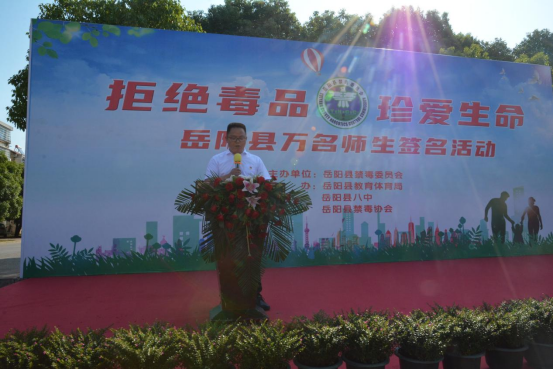 9月23日,嶽陽縣“拒絕毒品、珍愛生命”萬名師生禁毒宣誓簽名活動在縣八中操場上舉行,副縣長候選人、縣公安局黨組書記、政委陳遇春,縣禁毒辦、縣禁毒協會相關負責人,縣教體局全體班子成員,城關地區校長及縣八中全體師生參加。全縣其他學校在分會場同步開展相關活動。