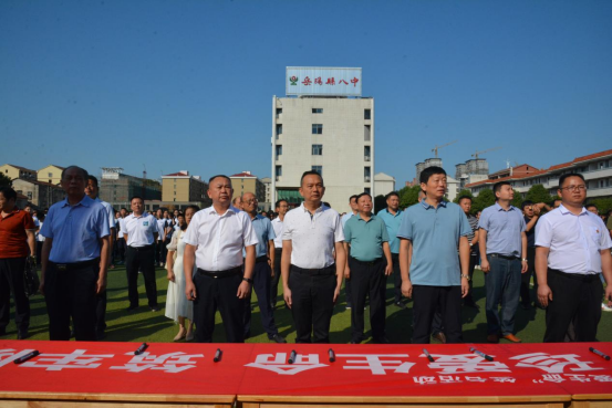 縣八中校長李官印在活動中致辭,要求全體師生從自身做起,堅決做到珍愛生命,遠離毒品,打造無毒校園。同時,也向全校學生發出倡議,爭當向上向善好少年,自覺參加禁毒宣傳教育活動,積極向親朋好友、父母長輩宣傳禁毒知識,帶動家庭和周圍的人共同拒絕毒品。
