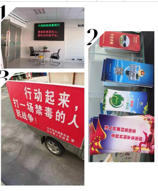 活動中,工作人員和誌願者向過往群眾派發禁毒宣傳單、倡議書,向鎮民講解各種傳統毒品和新型毒品的種類、特點、危害及禁毒法律法規,如何遠離毒品增進身心健康等;誌願者還向居民群眾發放《禁毒宣傳手冊》和舉報獎勵辦法,鼓勵居民群眾積極舉報有吸毒、販毒、種毒等情況,號召大家積極參與禁毒鬥爭。同時,利用橫幅和電子顯示屏定點宣傳,啟動宣傳車上街動態宣傳,提醒大家珍惜生命,遠離毒品,並呼籲鎮民樹立積極健康的生活方式。