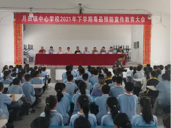 參觀完後,在學校禮堂舉辦了毒品預防宣傳教育大會。會上,月田鎮黨委書記付海苗介紹了近年來月田鎮黨委政府在打造無毒鄉鎮方麵的積極作為,縣教體局領導高作榮對青少年的健康成長提出殷切期盼。隨後,月田鎮派出所教導員陳書高同誌結合自己在抓捕、處置涉毒人員、案件的親身經曆,就毒品對個人、家庭、社會的危害、如何防範毒品、周圍人在吸食毒品关键词2應該怎麽做等方麵進行了集中授課。會後,在學校禁毒宣教室,通過播放禁毒短片的方式,進一步加深同學們對毒品危害的認識,告誡全體師生:毒品不僅吞噬巨額財富,還嚴重摧殘生命健康,助長暴力和犯罪,全體師生要遠離毒品,共同營造健康、和諧的校園氛圍。