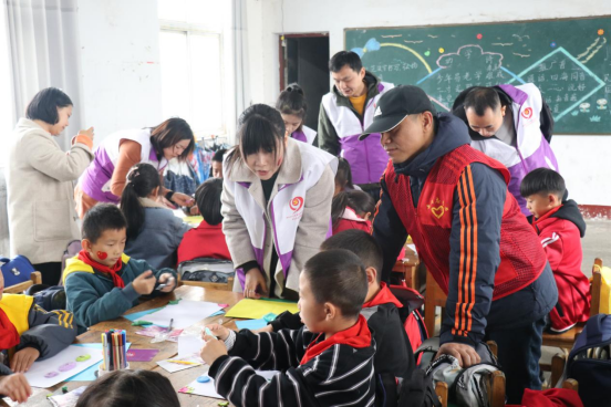 活動結束後,誌願者結合課堂內容帶領學生們通過手工製作、創意畫、書寫信環節來表達對祖國的熱愛與感恩,在民政誌願者的協助下,學生們一幅幅色彩斑斕、充滿愛國、愛黨的手工畫呈現在大家眼前,小小的作品承載了深深的愛國情誼。