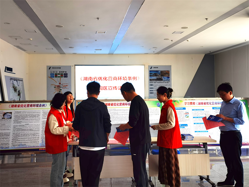 本次宣傳活動通過在嶽陽高新園區管委會大廳設置谘詢台、發放宣傳資料、擺放宣傳展板、播放宣傳電子屏、現場政策宣講等方式,為企業詳細介紹優化營商環境的重要性和相關政策,切實提高企業對優化營商環境政策的知曉率和滿意度。