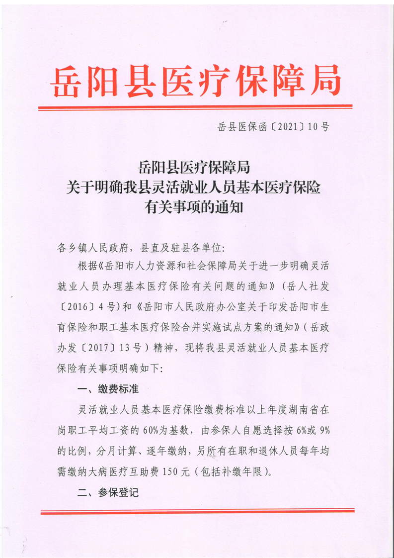 關於明確我縣靈活就業人員基本醫療保險有關事項的通知
