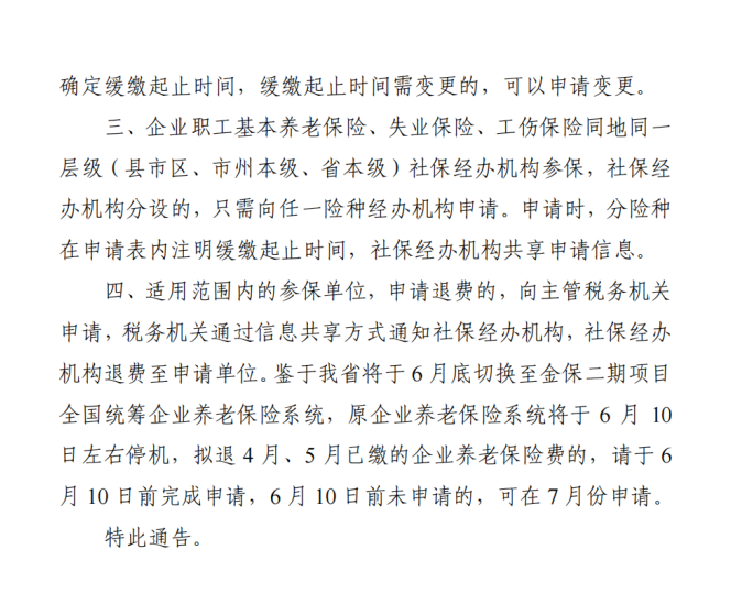 關於特困行業申請階段性緩繳企業社會保險費的通告