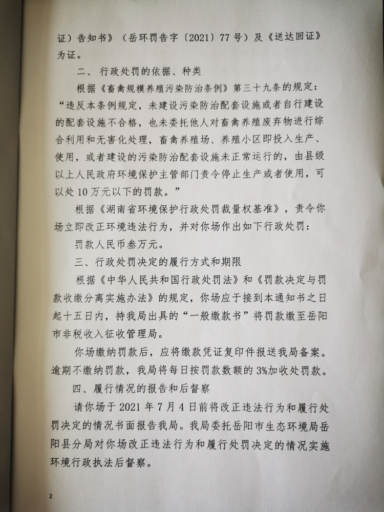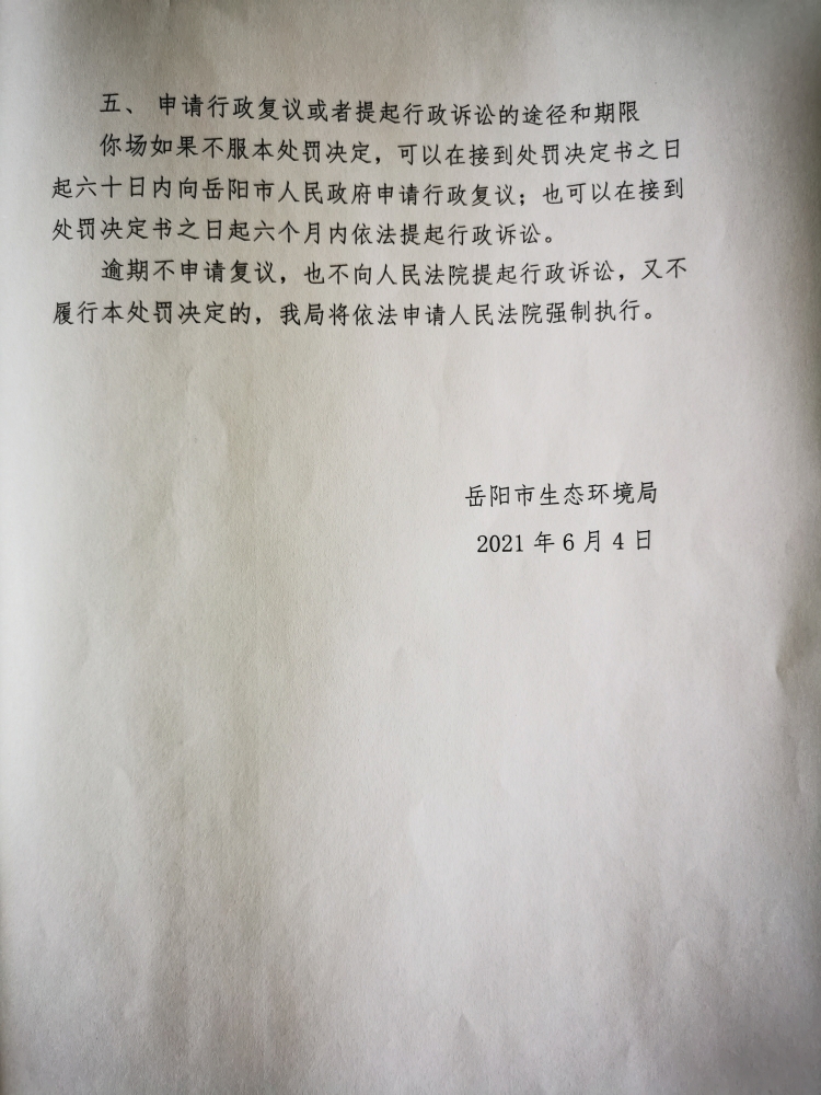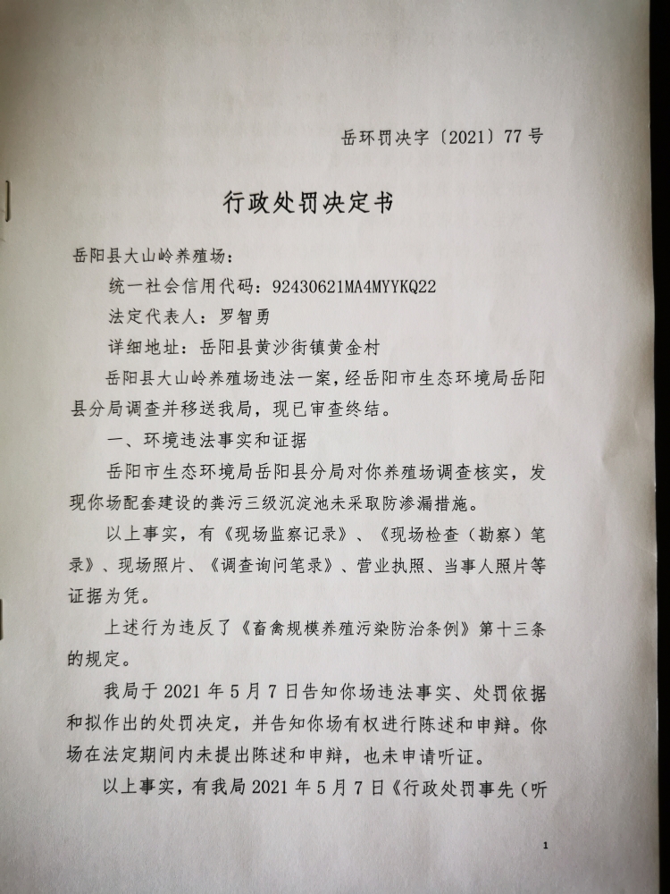 行政處罰決定書 嶽環罰決字[2021]77號