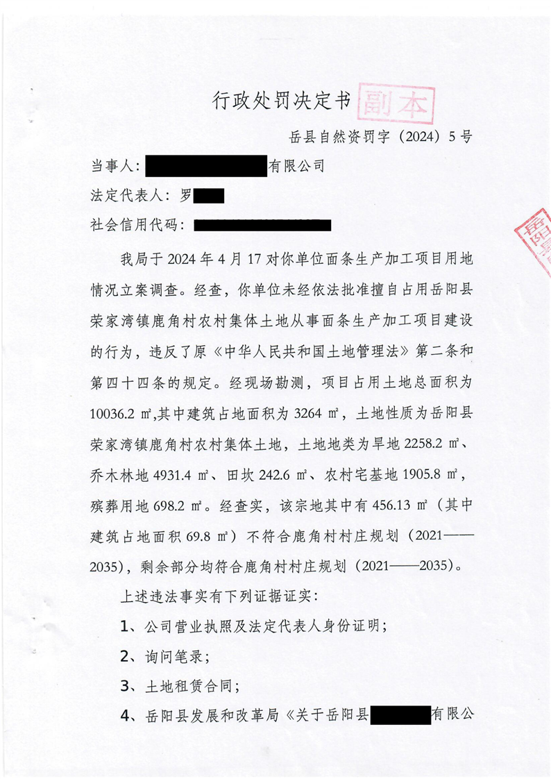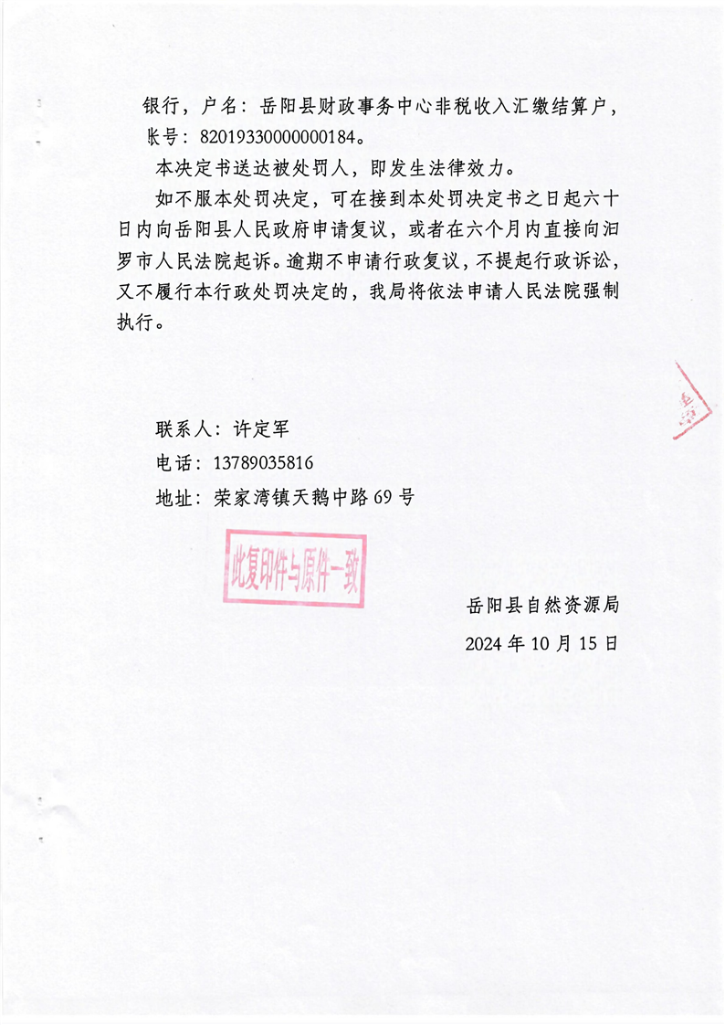 行政處罰決定書 嶽縣自然資罰決〔2024〕第5號