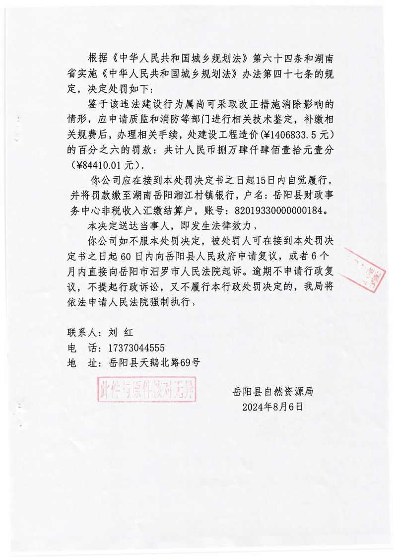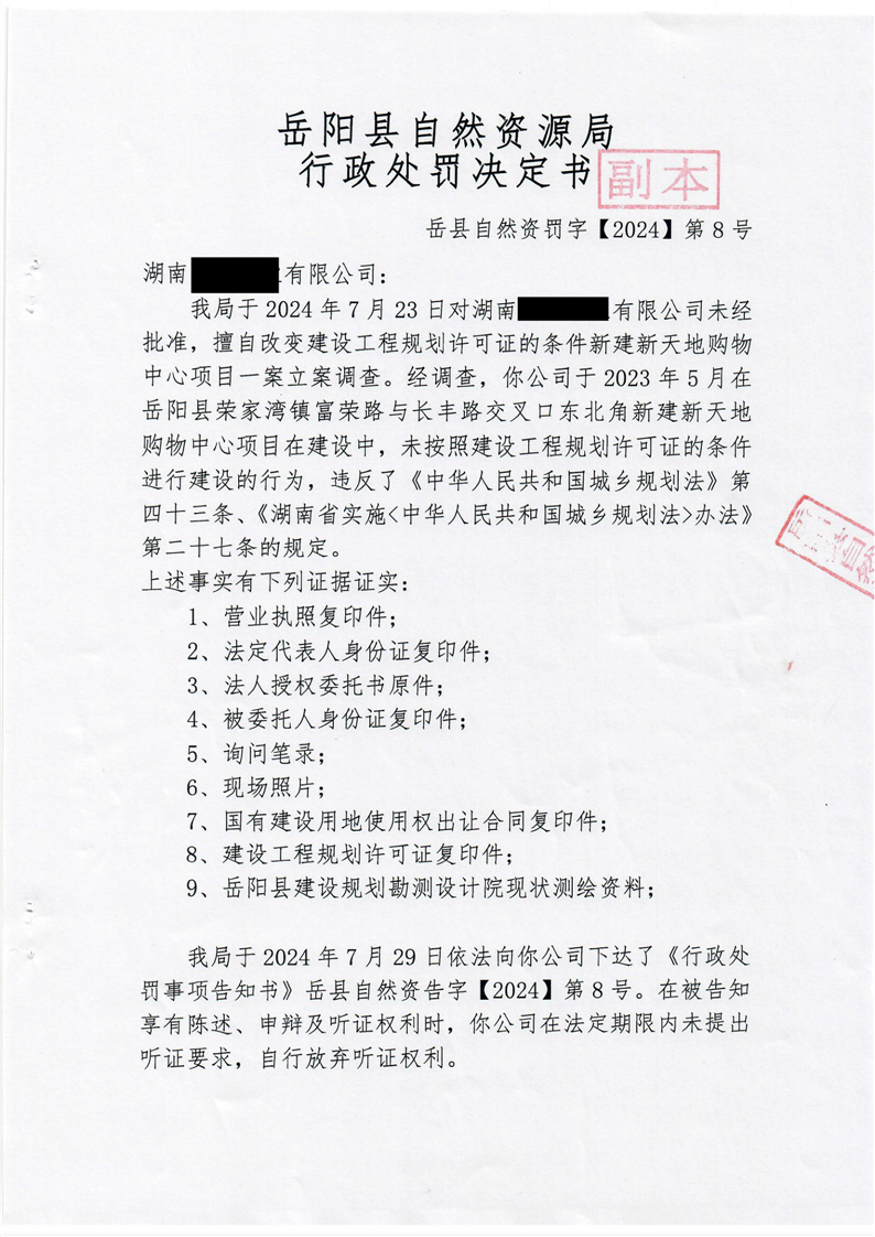 行政處罰決定書 嶽縣自然資罰決〔2024〕第8號